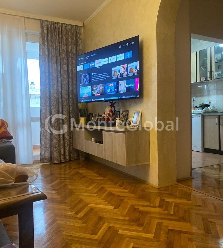The apartment consists of a living room, kitchen, dining room, two bedrooms, two bathrooms and a balcony.