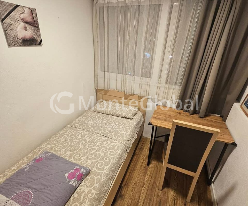 The apartment is fully furnished and equipped with all the necessary household appliances for comfortable living. It has good thermal insulation and no dampness.