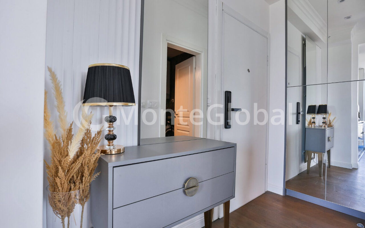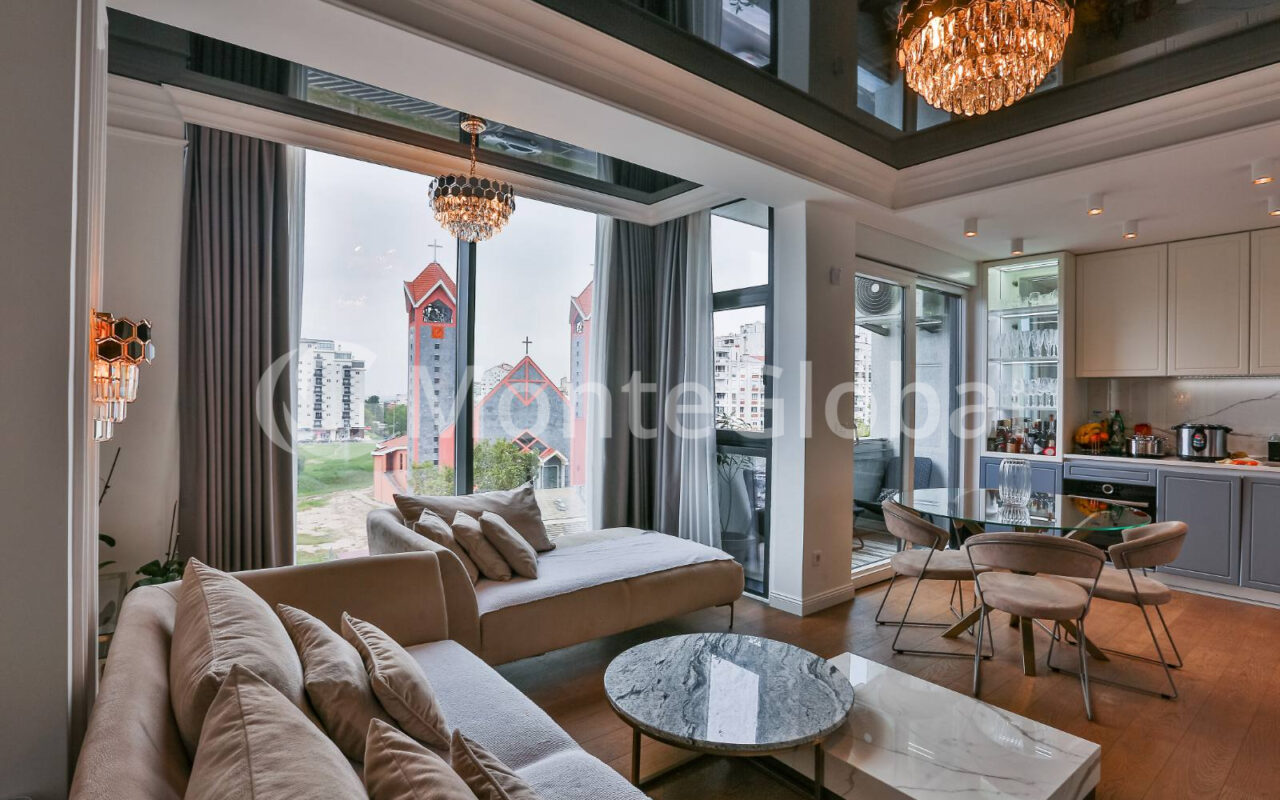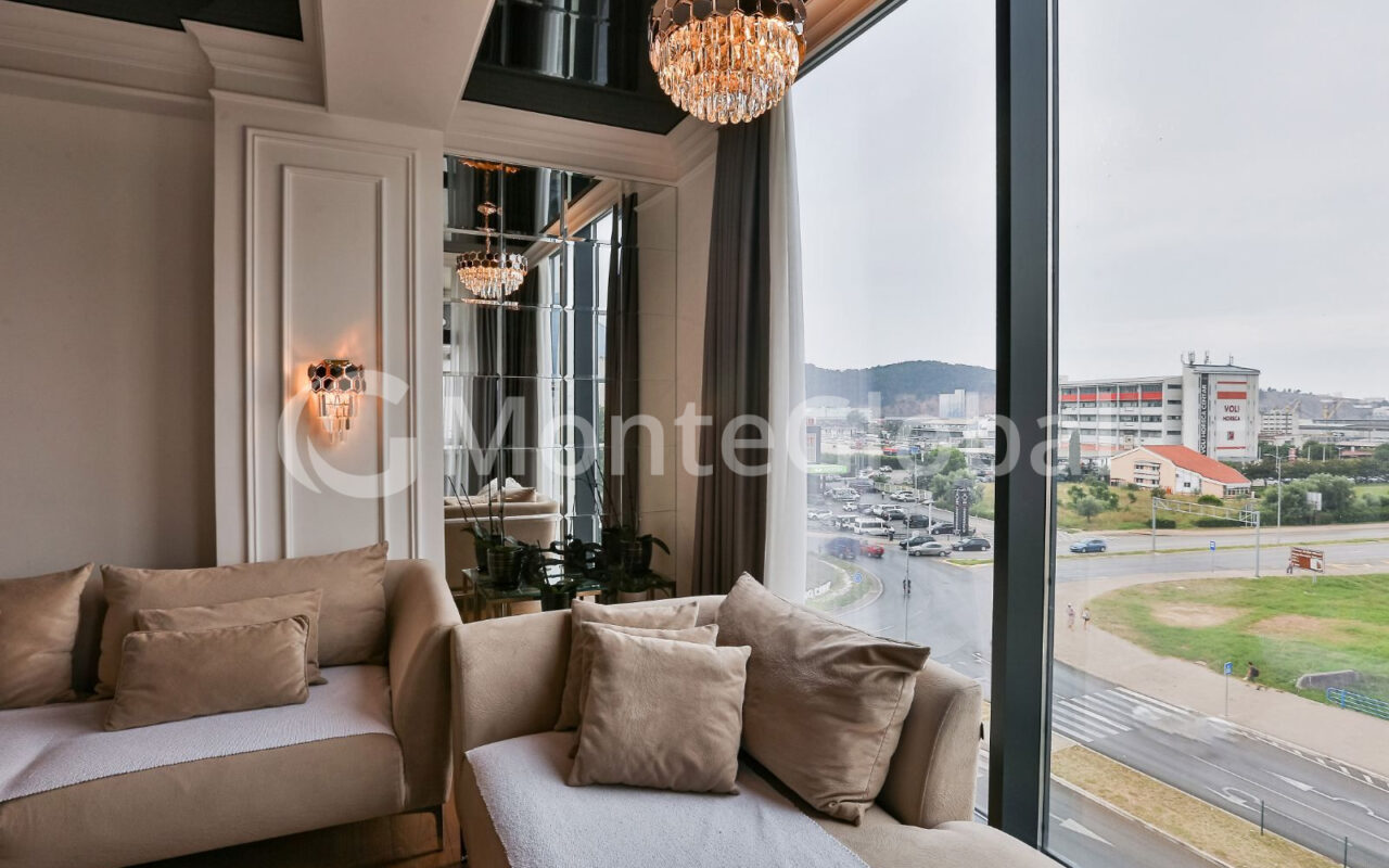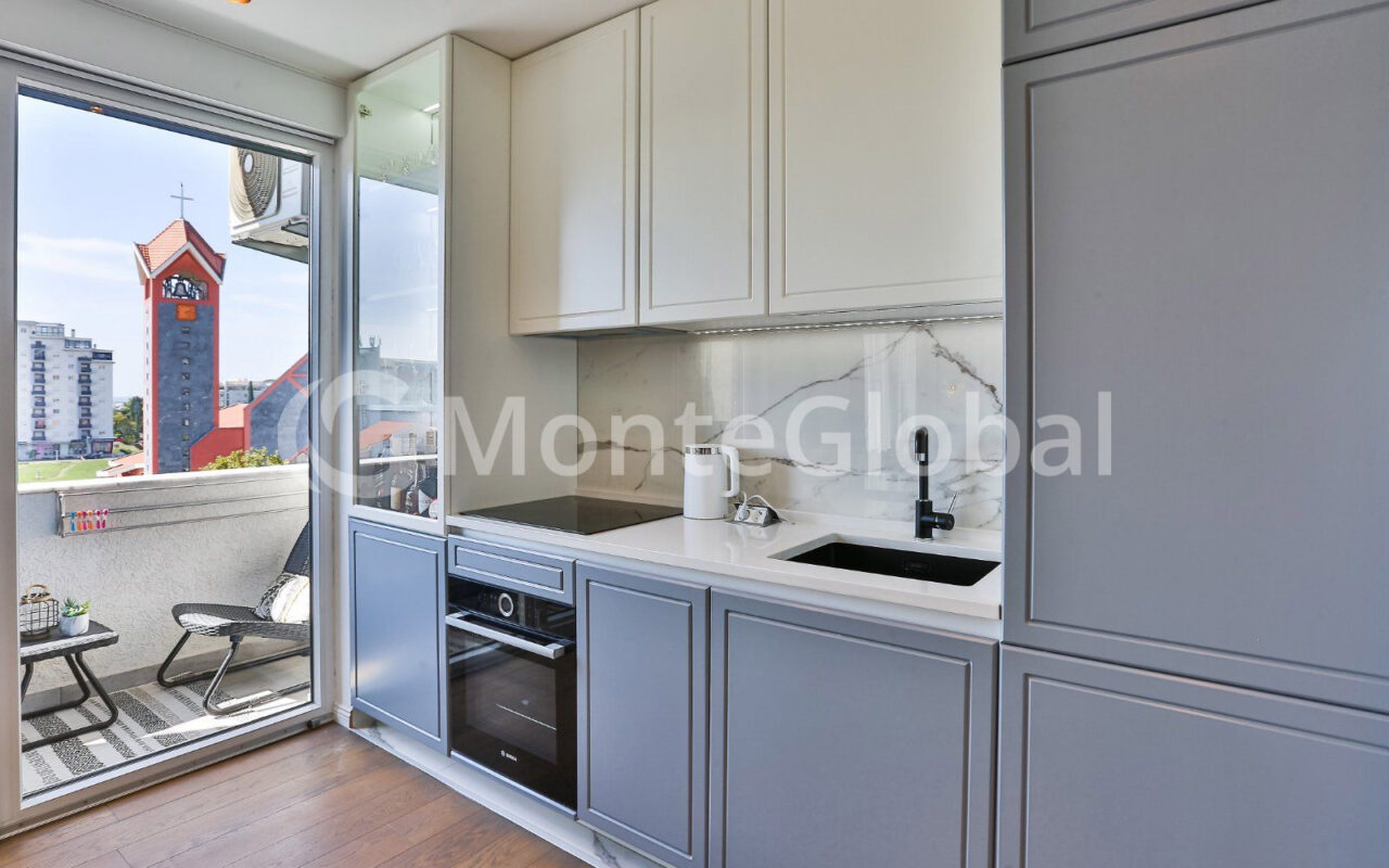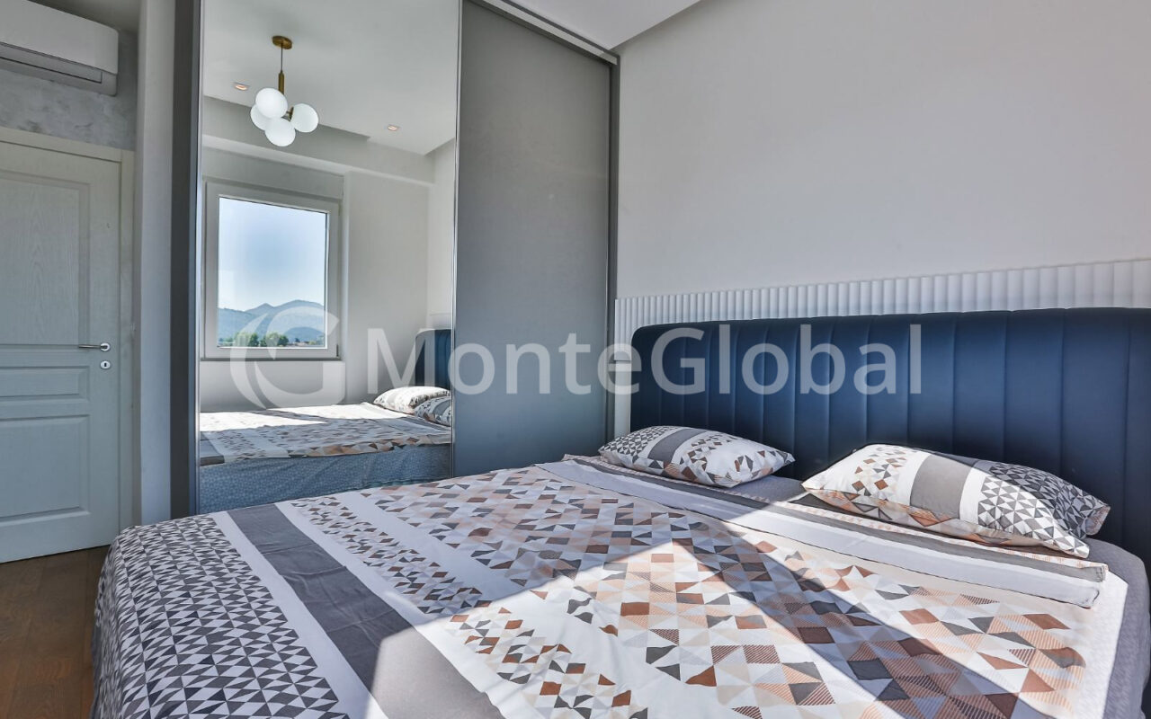 The structure of the apartment is a living room combined with a kitchen, one bedroom, a bathroom and a terrace overlooking the mountains and the city