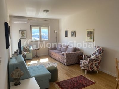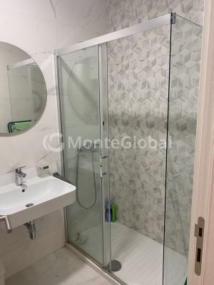 The structure of the apartment, living room combined with kitchen, one bedroom, bathroom and terrace overlooking the sea
