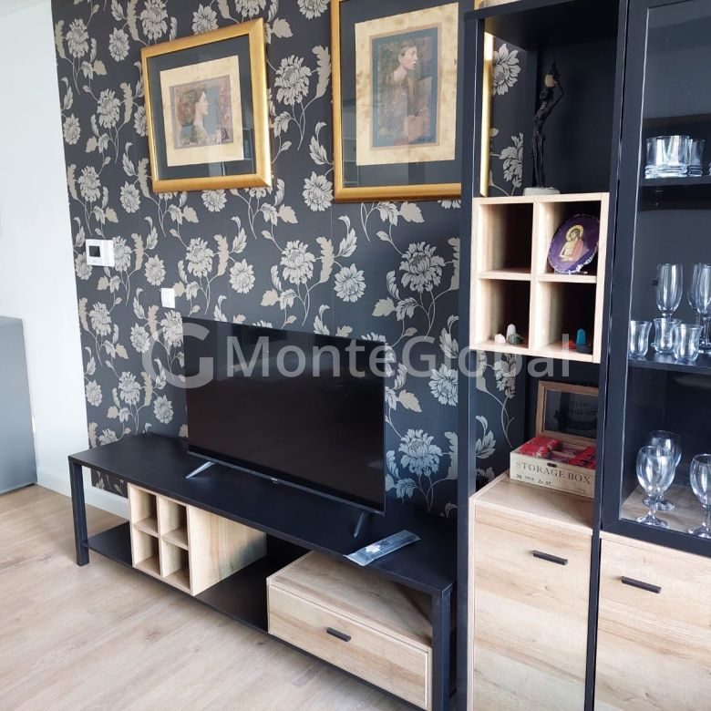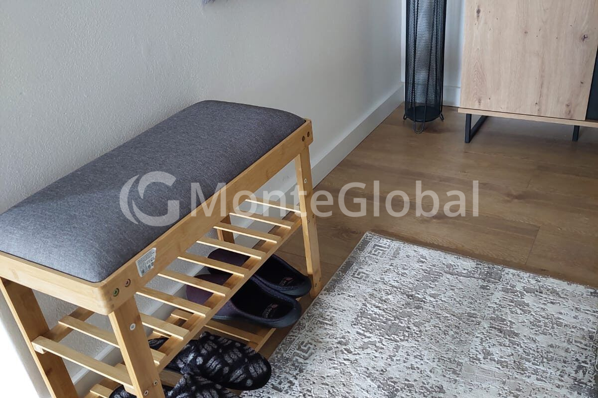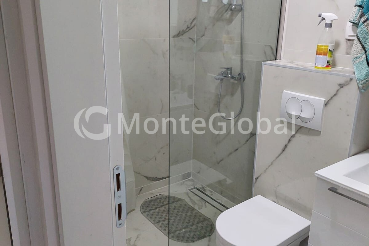 Apartment structure: living room combined with kitchen, two bedrooms, bathroom and terrace overlooking the sea. The bathroom has a heated floor.