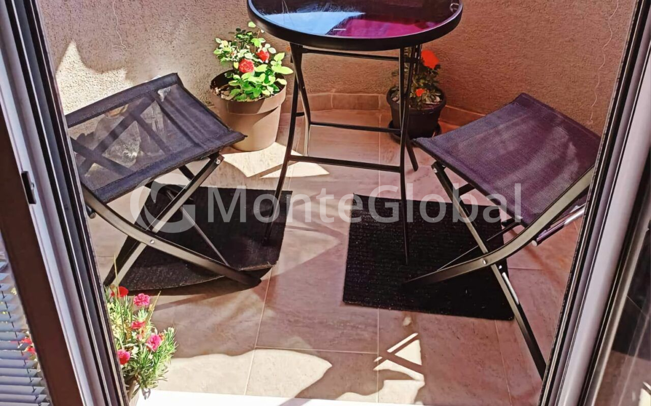 The structure of the apartment is a living room, a kitchen, one bedroom, a bathroom and two terraces (one terrace is glazed)