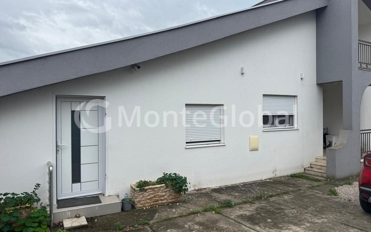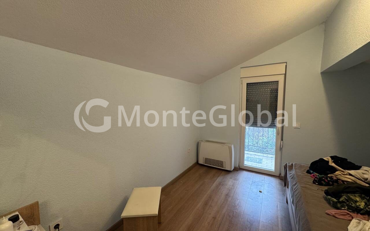 On the ground floor there is an entrance hall, three bedrooms, a kitchen-dining room and a bathroom. An internal staircase leads to the attic, where there is an office, a bathroom and a bedroom.