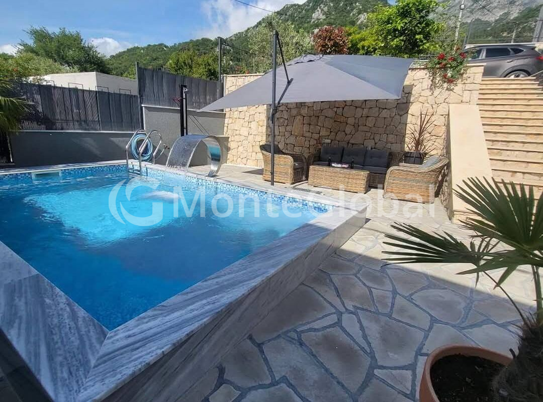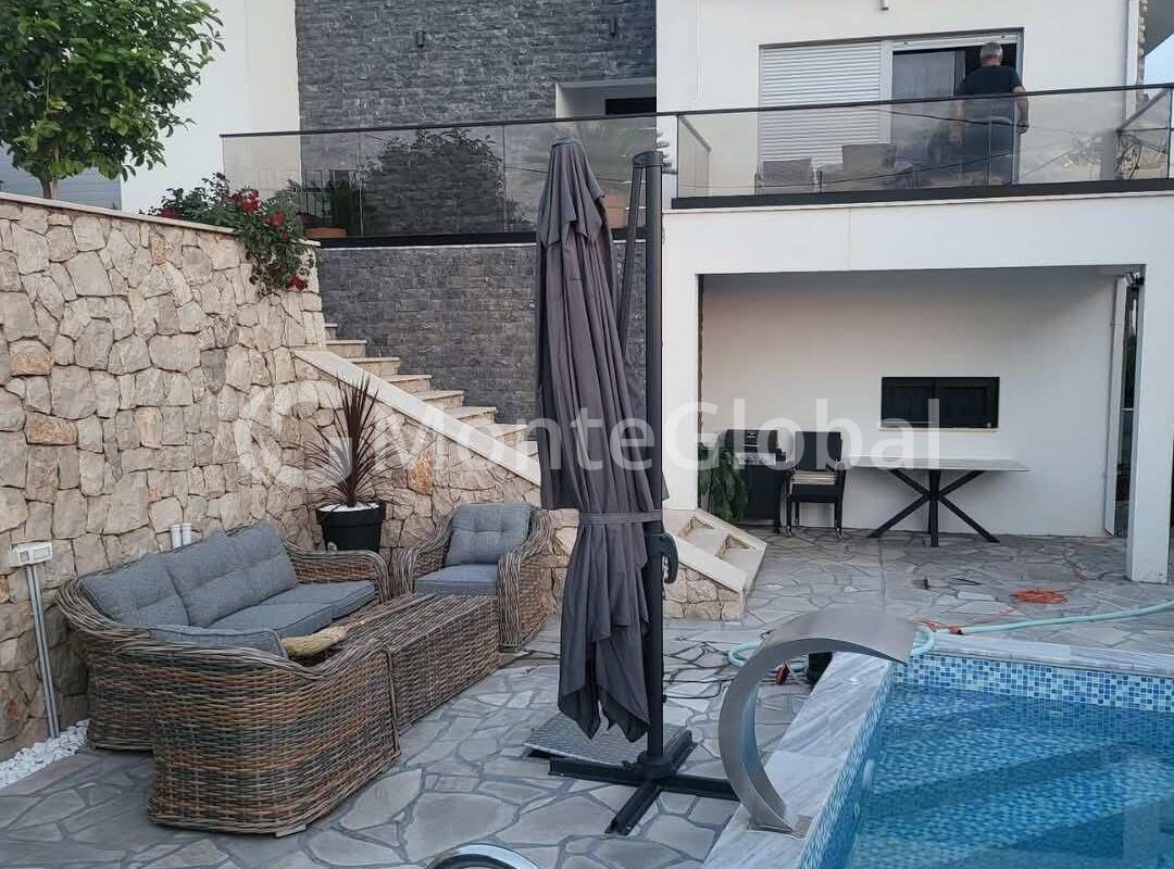 Spacious villa, with a total area of 305 m2, is located on a plot of land of 600 m2. On the territory there is a swimming pool, panoramic views, and various fruit trees typical of the Mediterranean climate are planted.