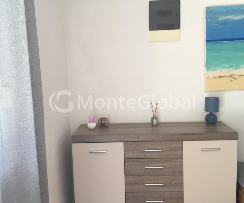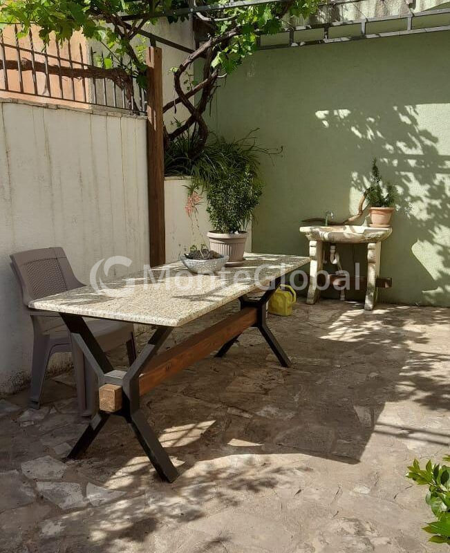 The second floor has a living room combined with a kitchen, a bedroom, a bathroom and a spacious terrace. An external staircase leads to the second floor.