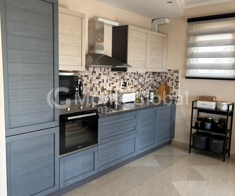On the second floor there is a living room combined with a kitchen, a bedroom, a bathroom and a spacious terrace.