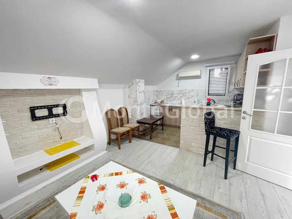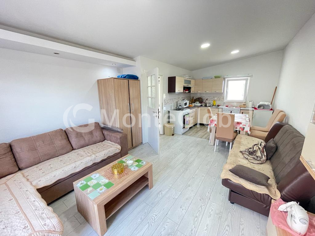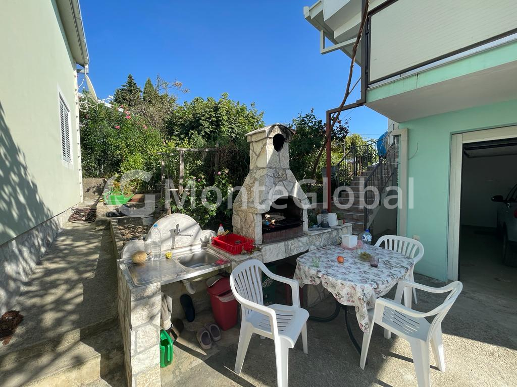 House for sale 122m2 in the city of Bar. Plot 303m2. A house without encumbrances. On the territory of the house there is a garage and a guest apartment with its own bathroom and terrace. There is also a storage room of 15 m2 on the territory. A wood stove and air conditioning are installed.