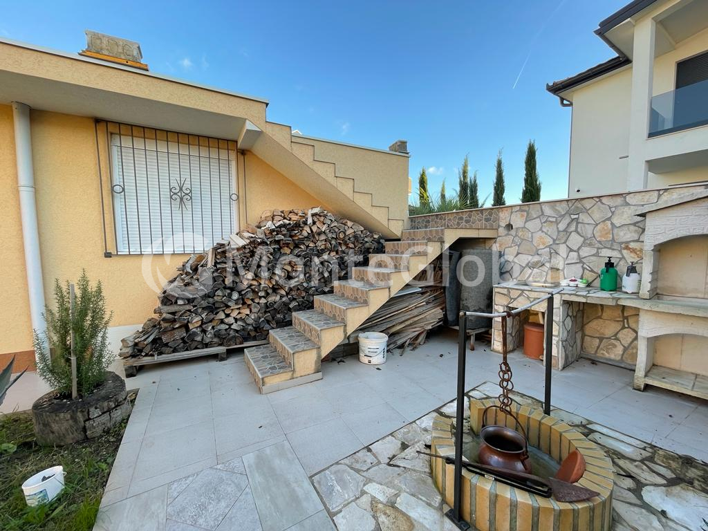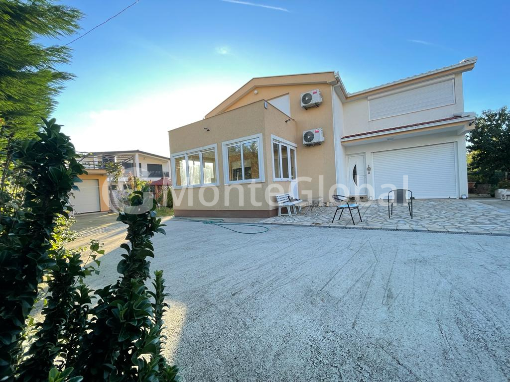 House for sale 162m2 in the suburbs of Bar, Pole district. Plot 673m2. 3500 meters to the sea. Central heating using pellets + heated floors + air conditioning. The house also has a chimney for installing a fireplace. The second garage is used as a workshop, above which an additional guest apartment can be built. There are many fruit and ornamental plants on the site, a wooden gazebo, and a grill area. There is space to build a swimming pool. The house is insulated and does not require repairs. Parking for 5 cars. Convenient access to the house. Dead end street. Good neighbors.