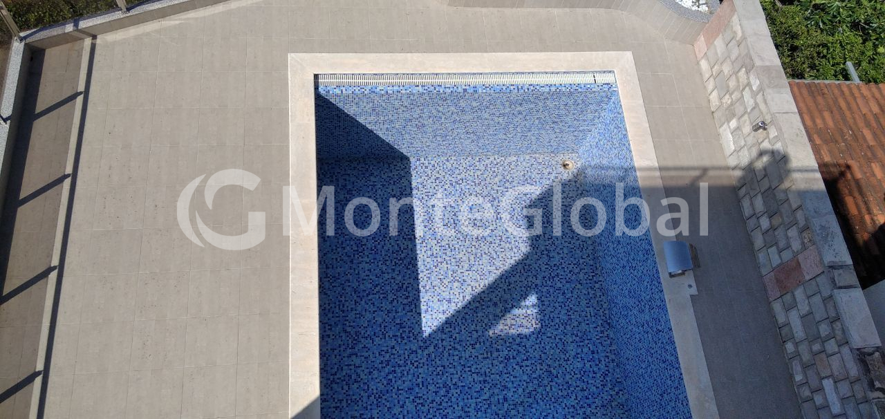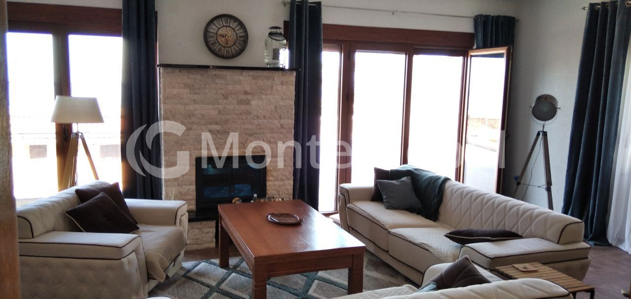 On the ground floor there is a spacious living room, where you can spend cozy family evenings by the fireplace or go out onto the terrace where the pool is located!
