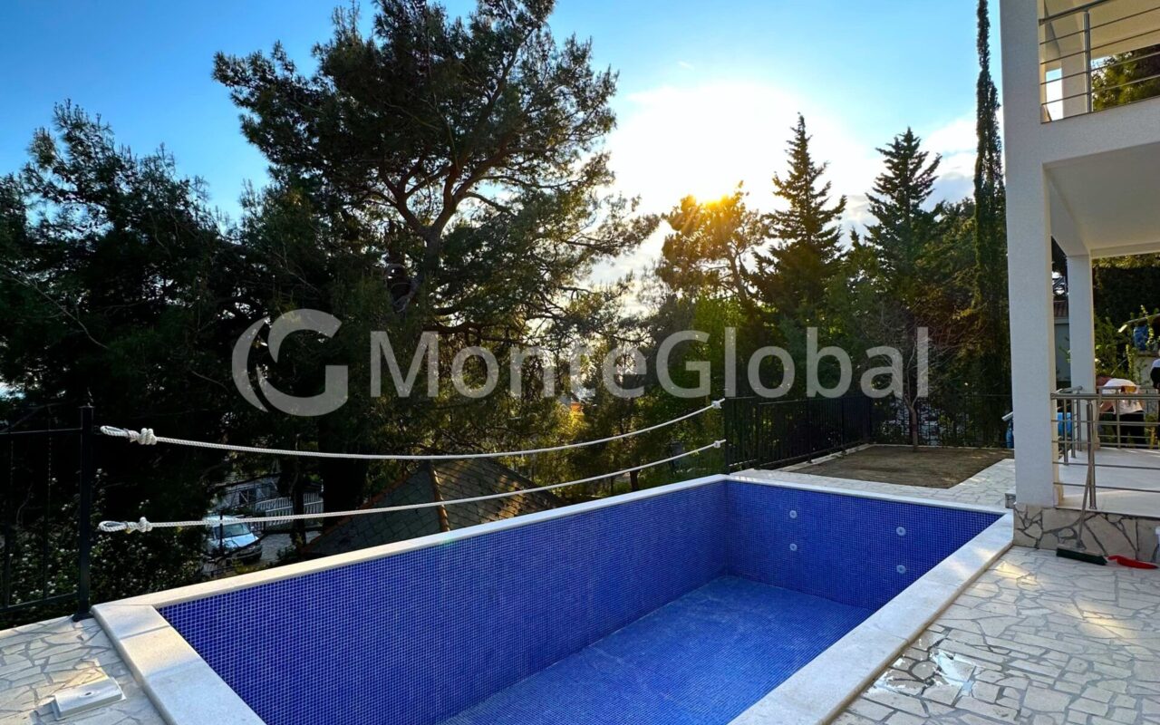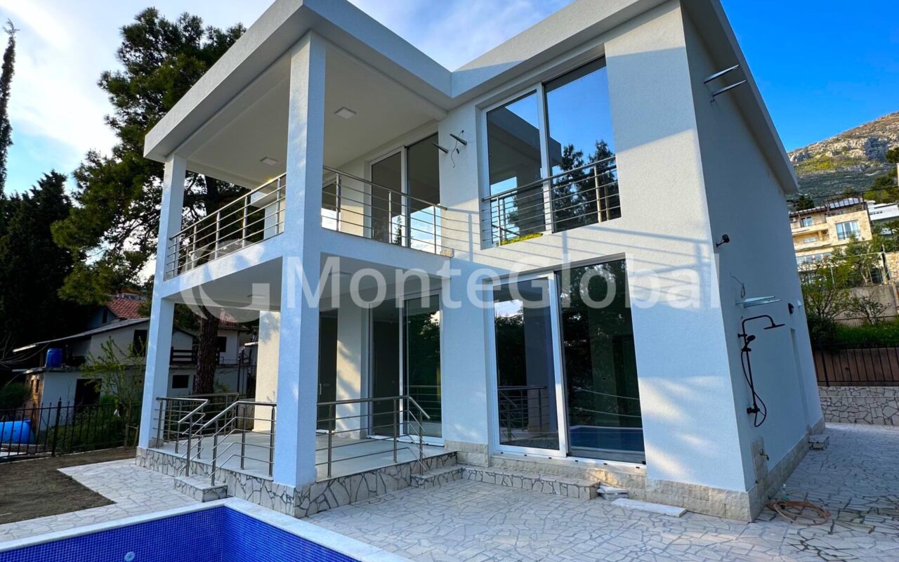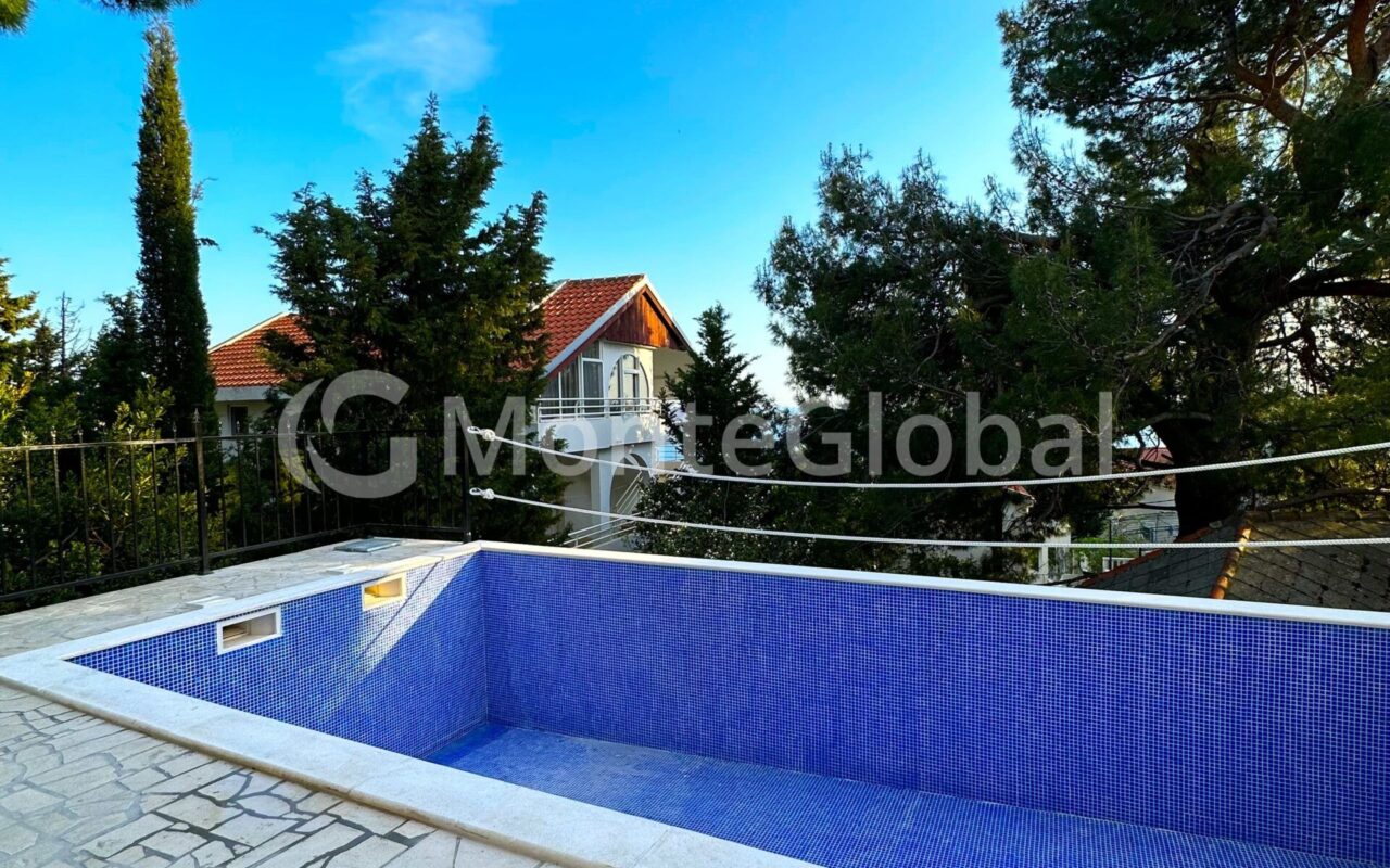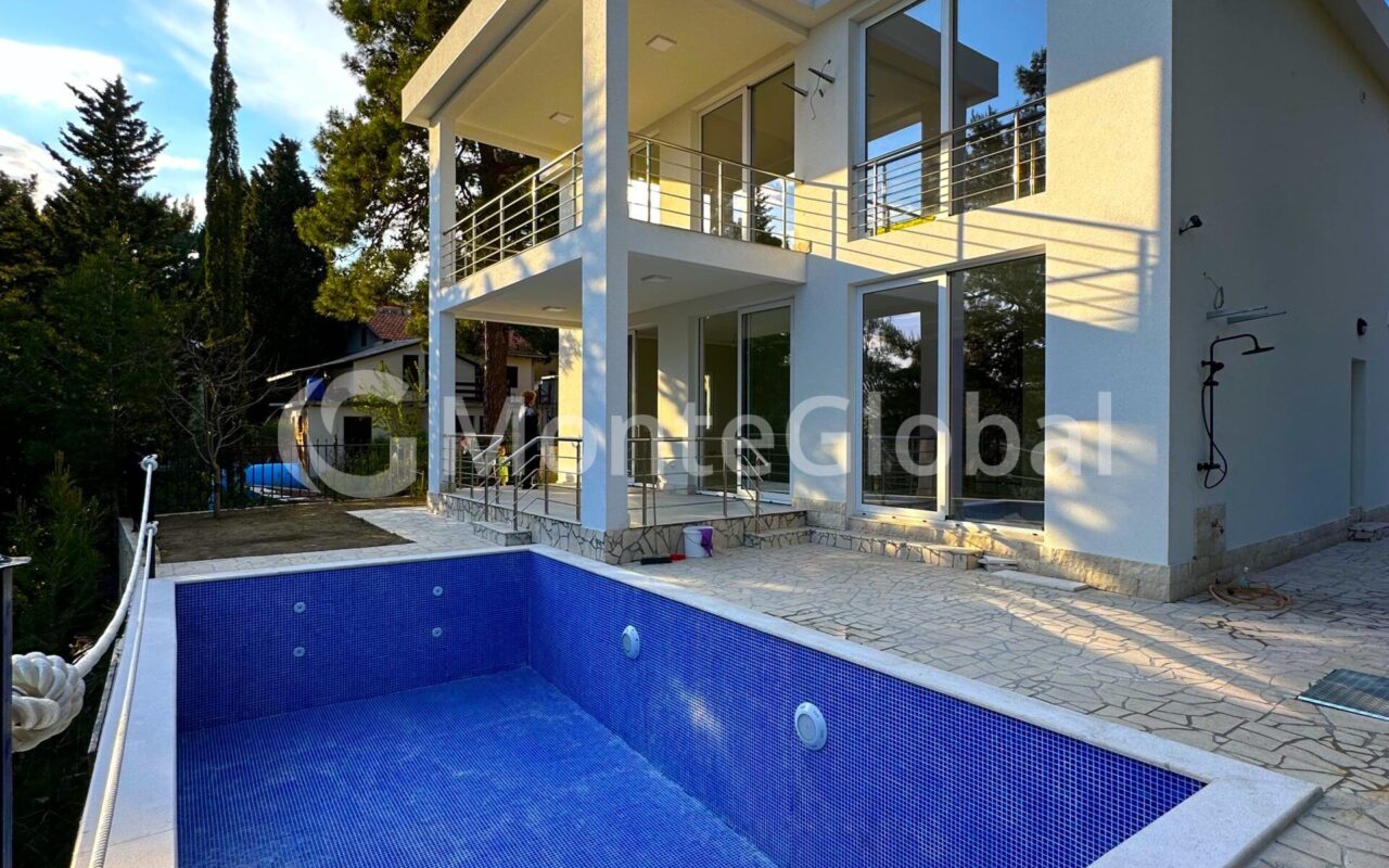 New villa for sale Bar, Green Belt. With building permit and legal documents. The house of 220 M2 is situated on a plot of 350 M2. Large swimming pool of 7x4m. In front of the house 3 parking spaces. Distance from the sea 450 meters on foot.