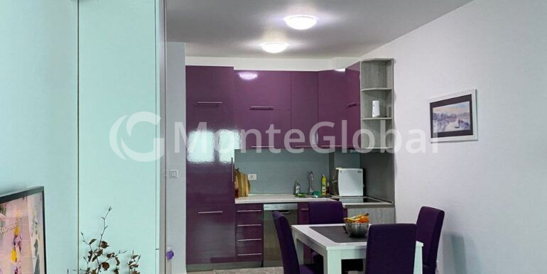 The structure of the apartment is a living room combined with a kitchen, one bedroom, a bathroom and a terrace