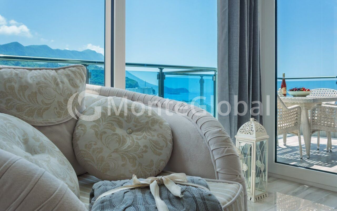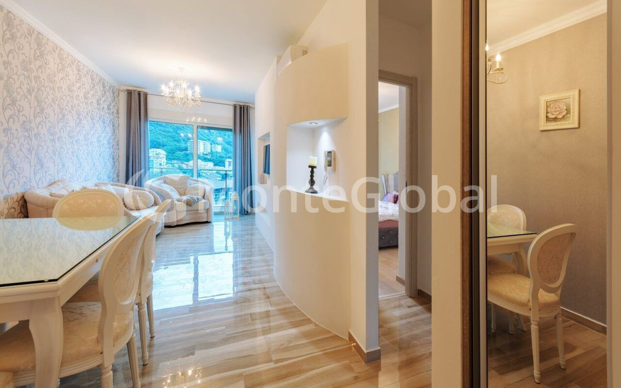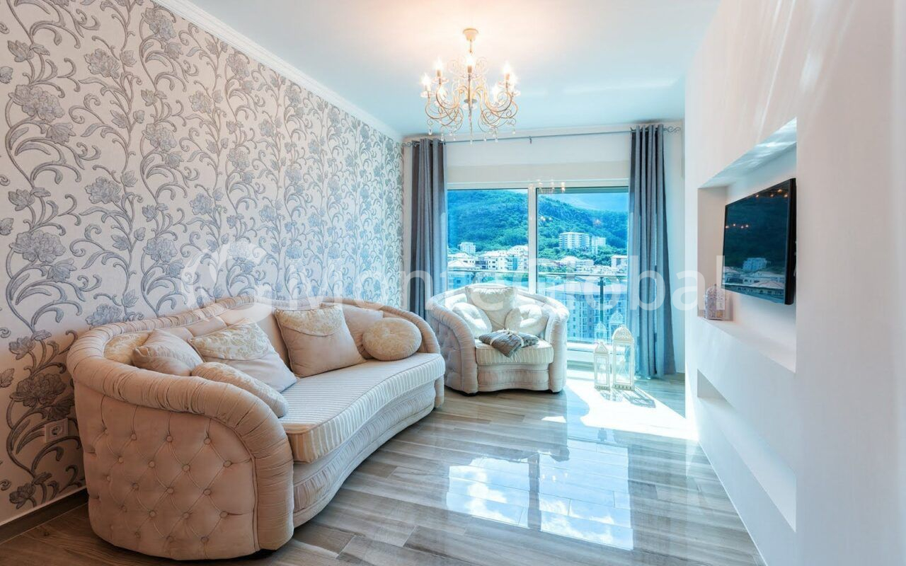 Apartment for sale with sea and mountain views in the Becici residential complex.