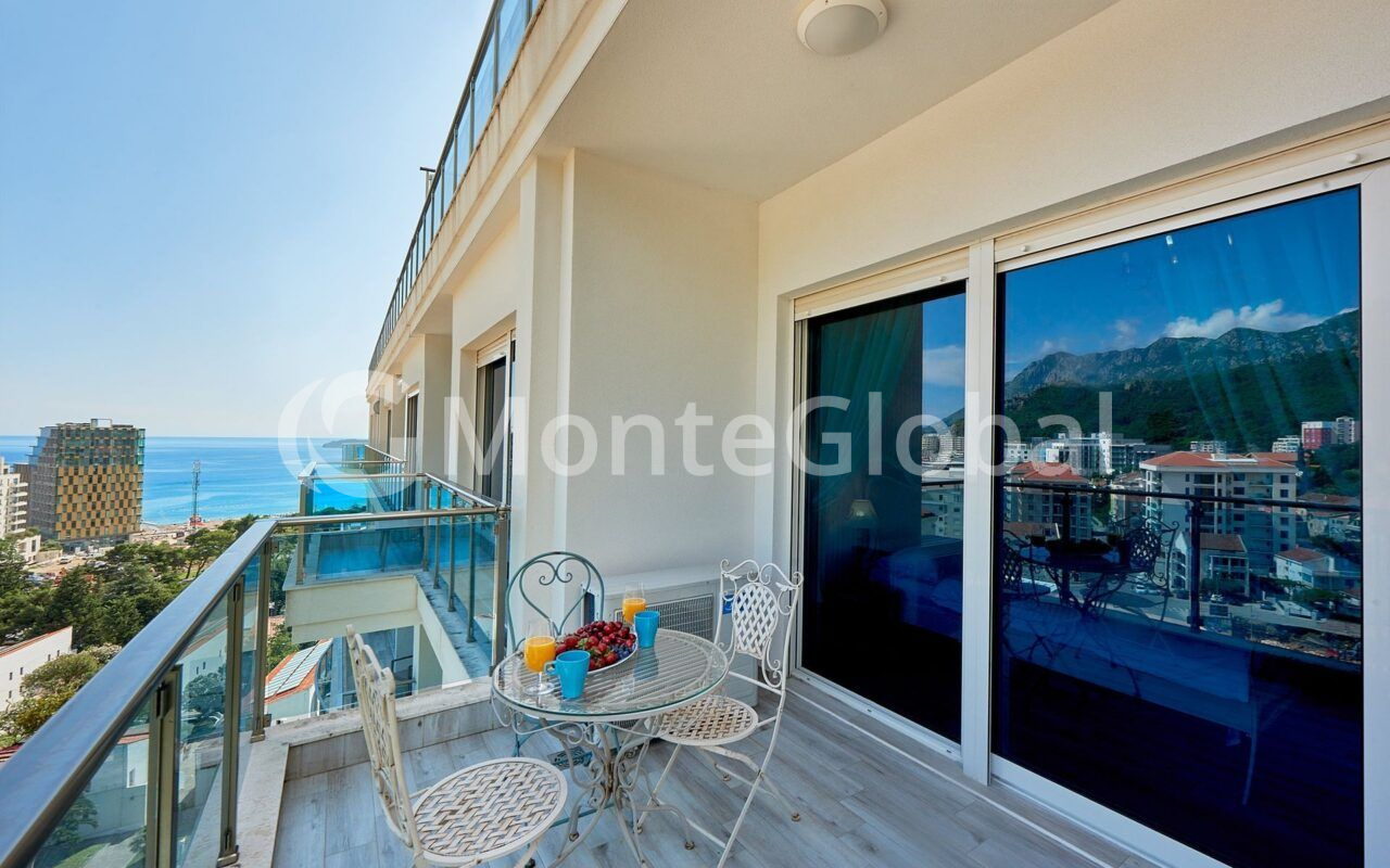 The terrace offers beautiful views of the sea and the resort village of Becici.