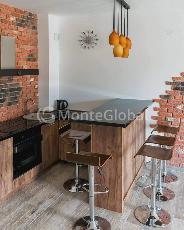 In the living room and kitchen area there is a brick wall, traditional for a loft, wide windows, and every piece of furniture - sofas upholstered in burlap, a high-tech fireplace, a bar counter with high chairs, leather on the floor, a hammock - is an impressive detail that attracts attention. and complementing the overall atmosphere. The bedroom areas differ from the guest area: one uses a chocolate palette, the second sleeping area is in shades of gray and white.