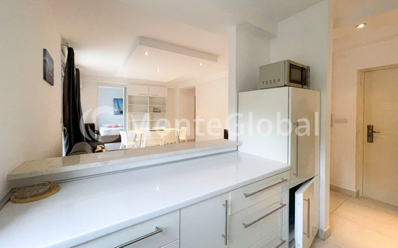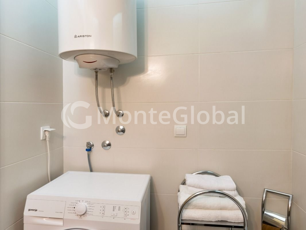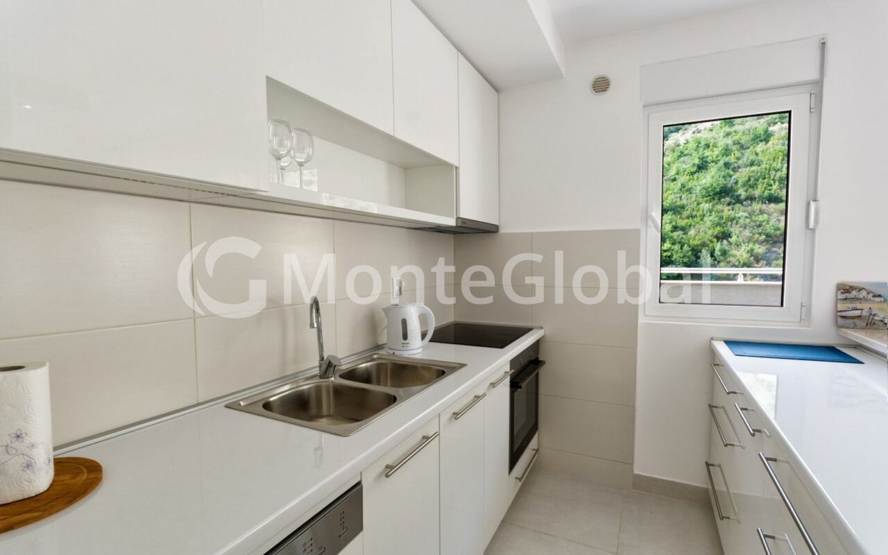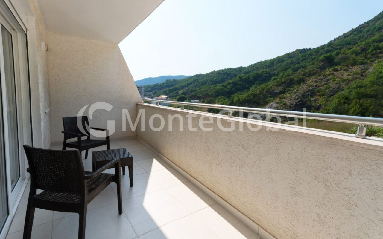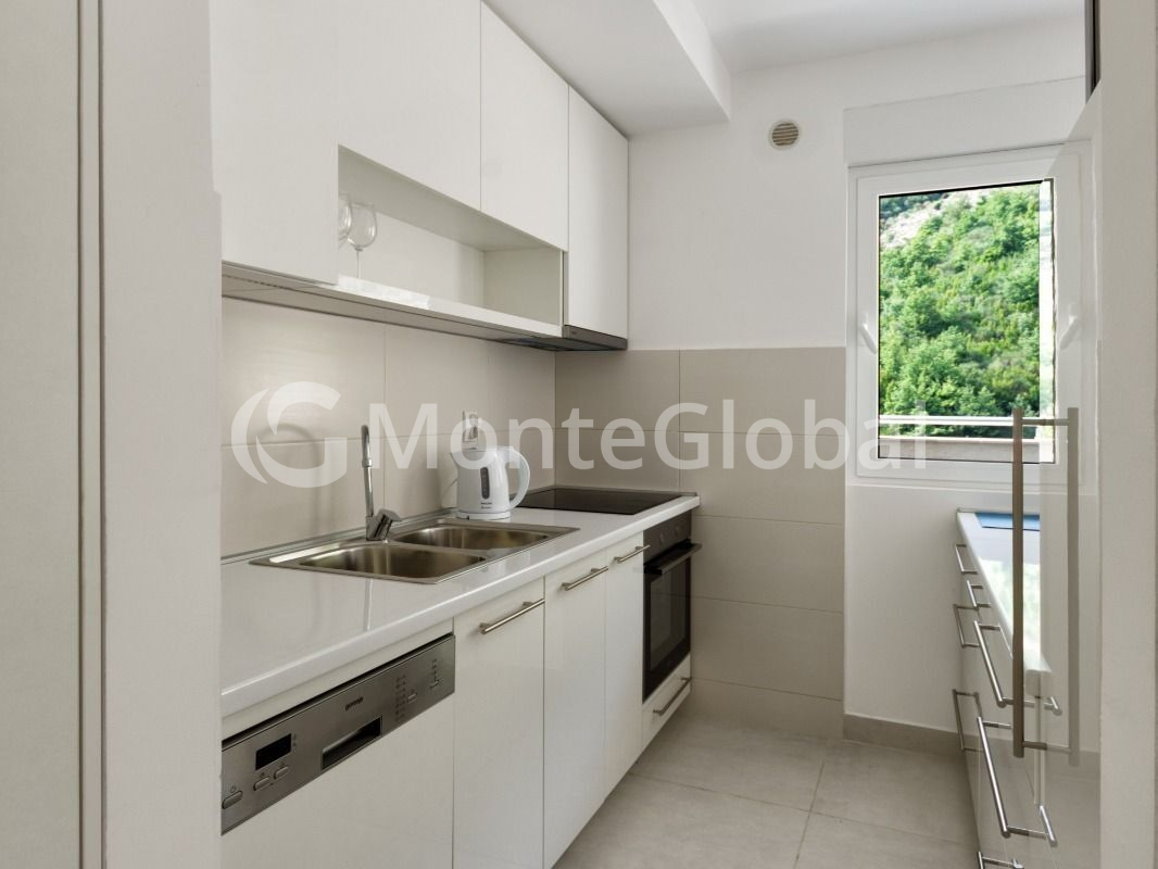 A fully furnished two-bedroom apartment in a quiet, green area of Becici is offered for sale.