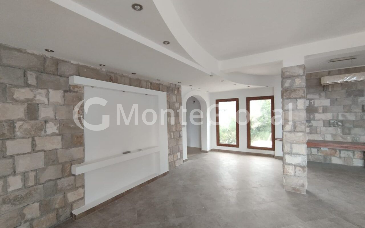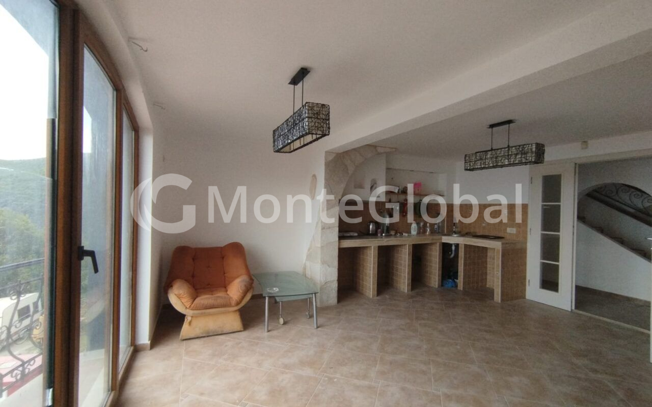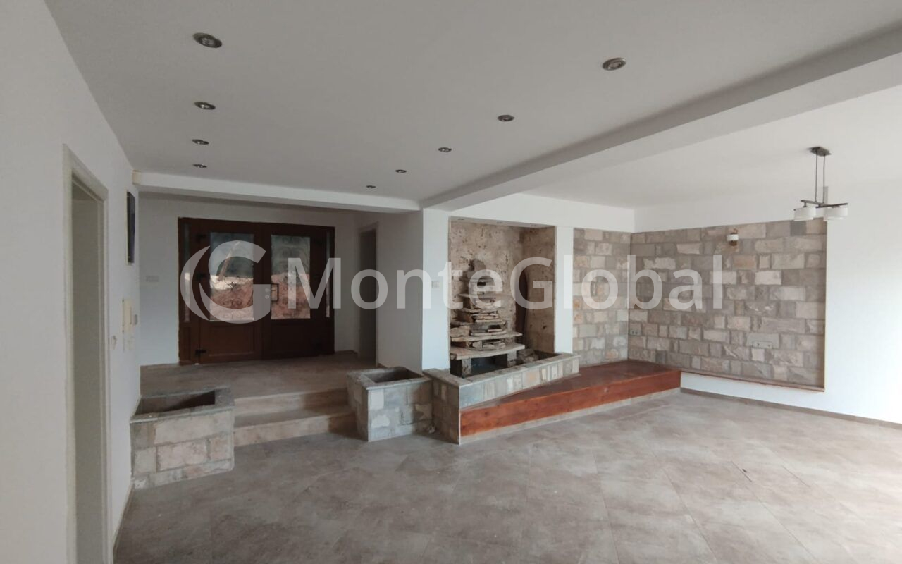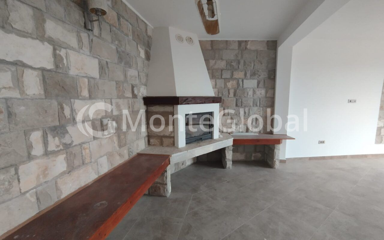 1st floor: entrance hall, living room with fireplace, space for kitchen equipment, 2 bedrooms, 2 bathrooms, sauna, exit to the terrace with barbecue area.