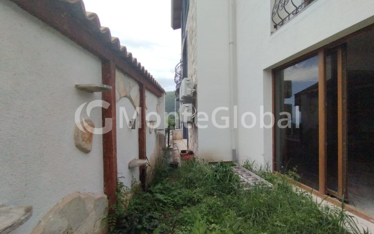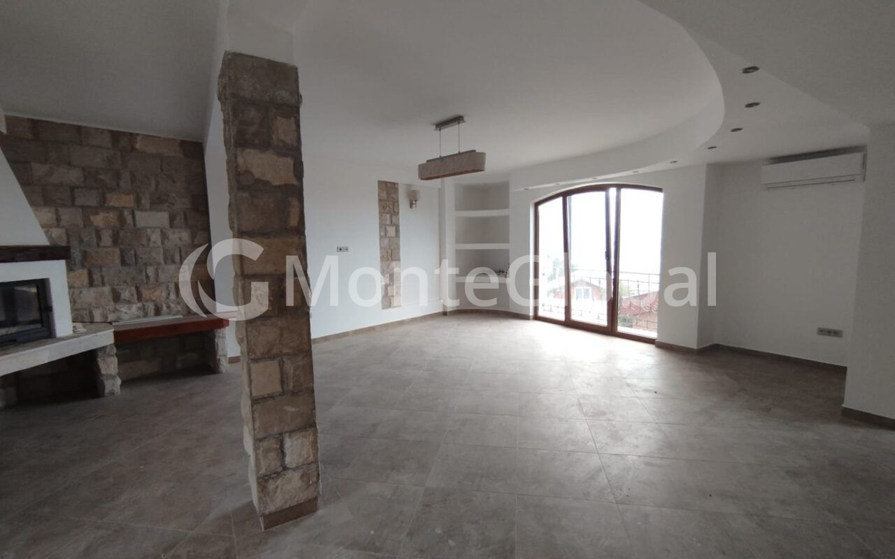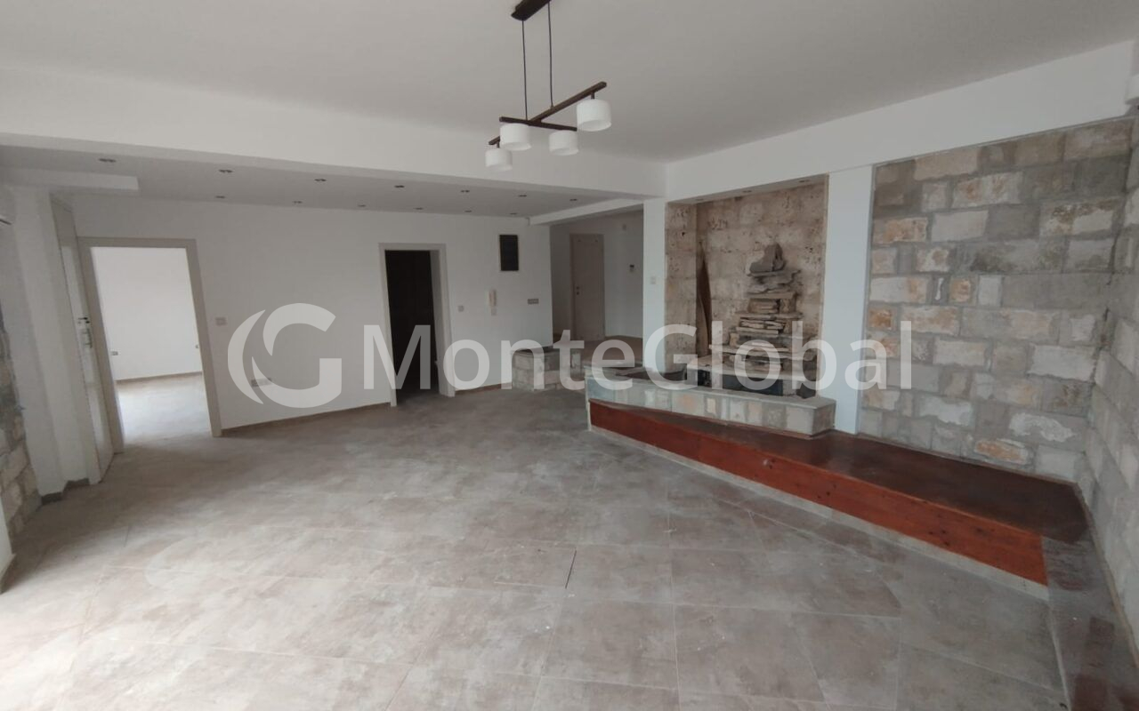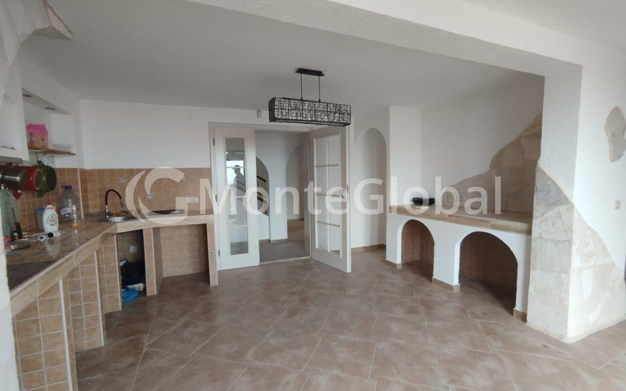 1st floor: entrance hall, living room with fireplace, space for kitchen equipment, 2 bedrooms, 2 bathrooms, sauna, exit to the terrace with barbecue area.