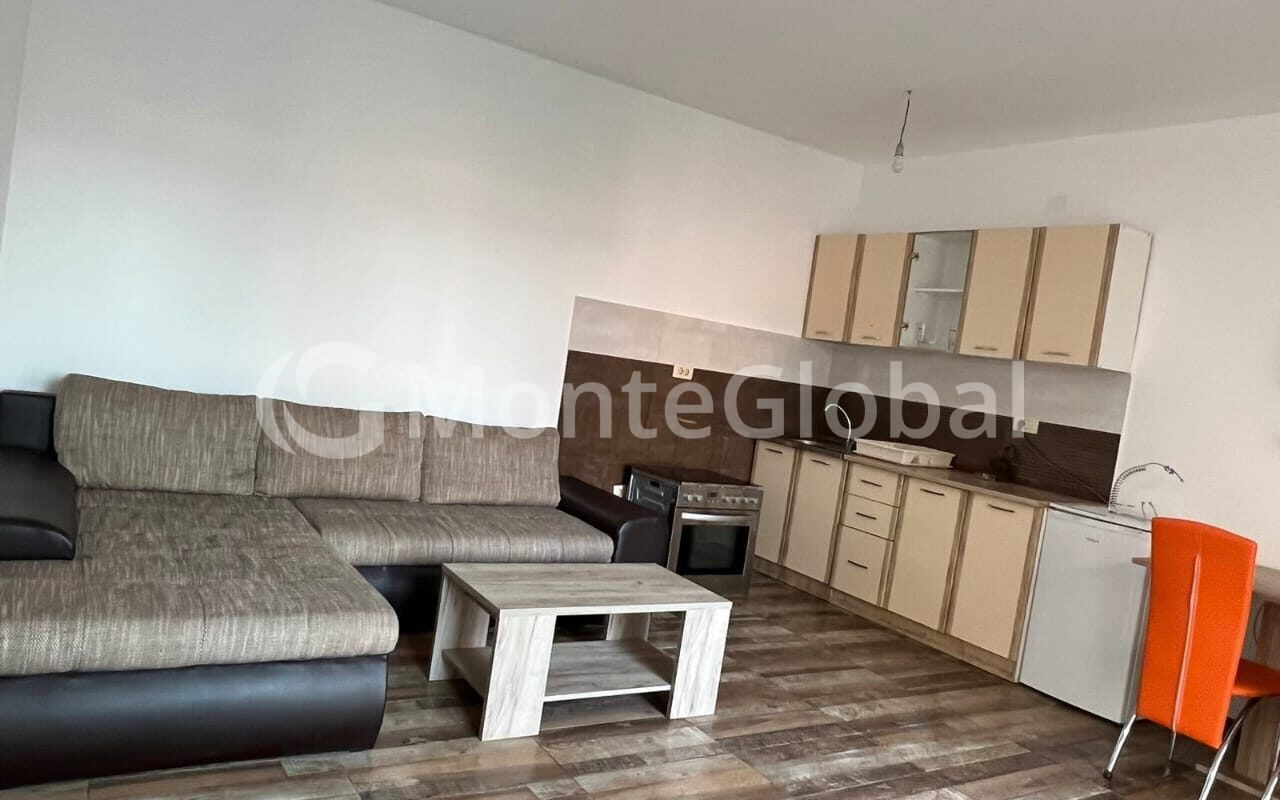 The structure of the apartment is a living room combined with a kitchen, one bedroom, a bathroom and a terrace