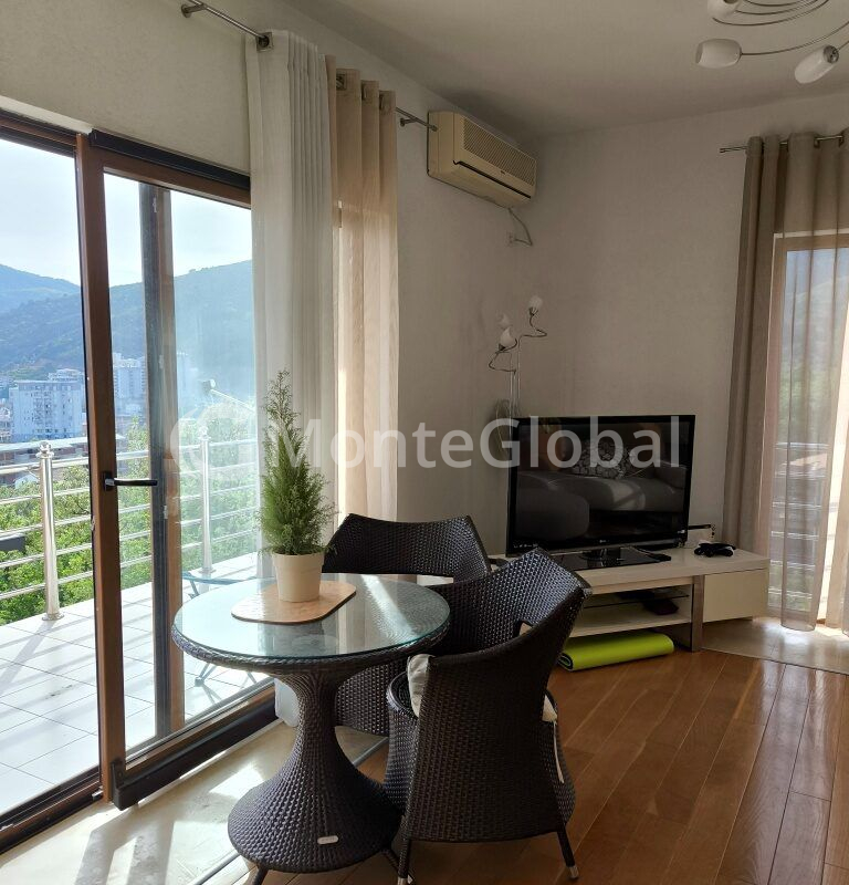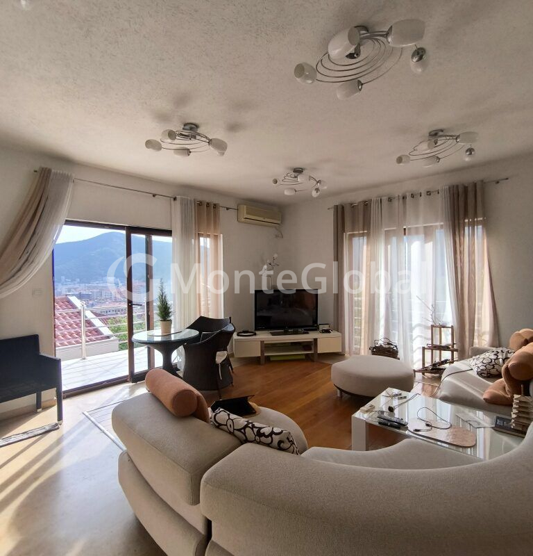 In the resort town of Budva, in the Lazi area, a spacious apartment with a beautiful view of the sea and mountains is offered for sale