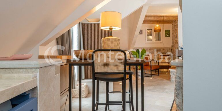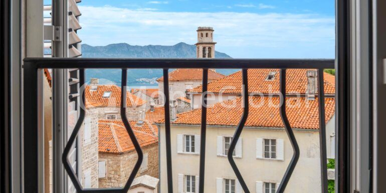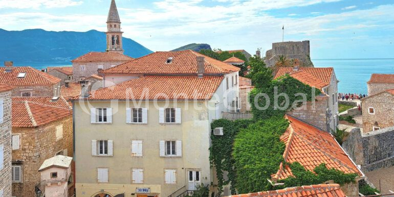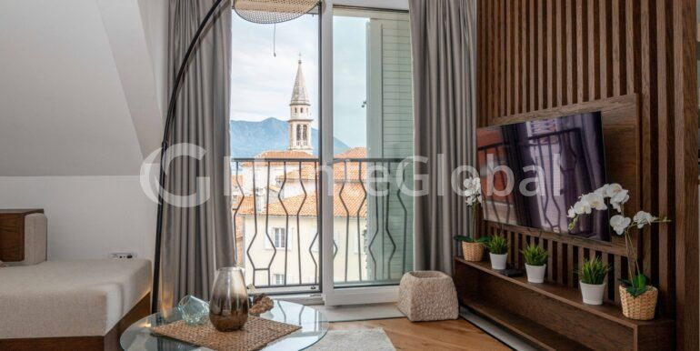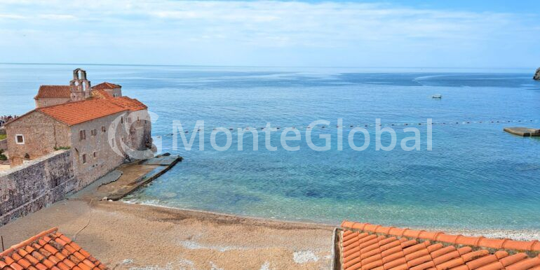 An exceptional studio apartment located in the heart of Old Budva offers breathtaking views of the beach, the azure sea and the fortress walls of the historic city.