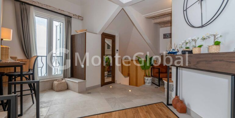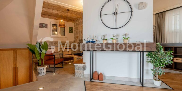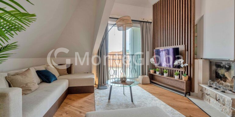 The apartment has been renovated to a high standard using the best materials and finishing elements. Traditional architecture and modern interior design are harmoniously combined here, filling the space with natural light and revealing stunning sea views from the living room.