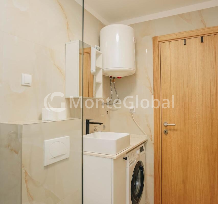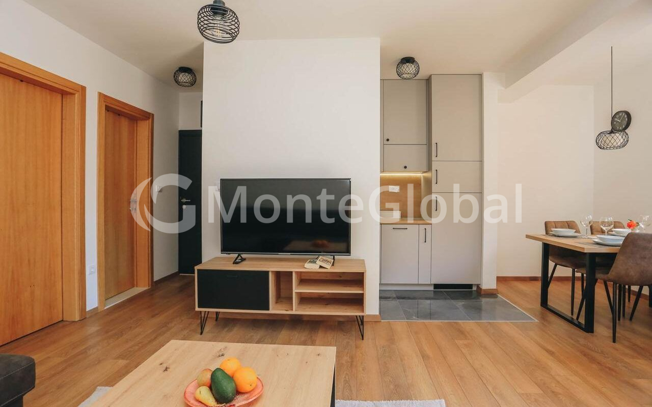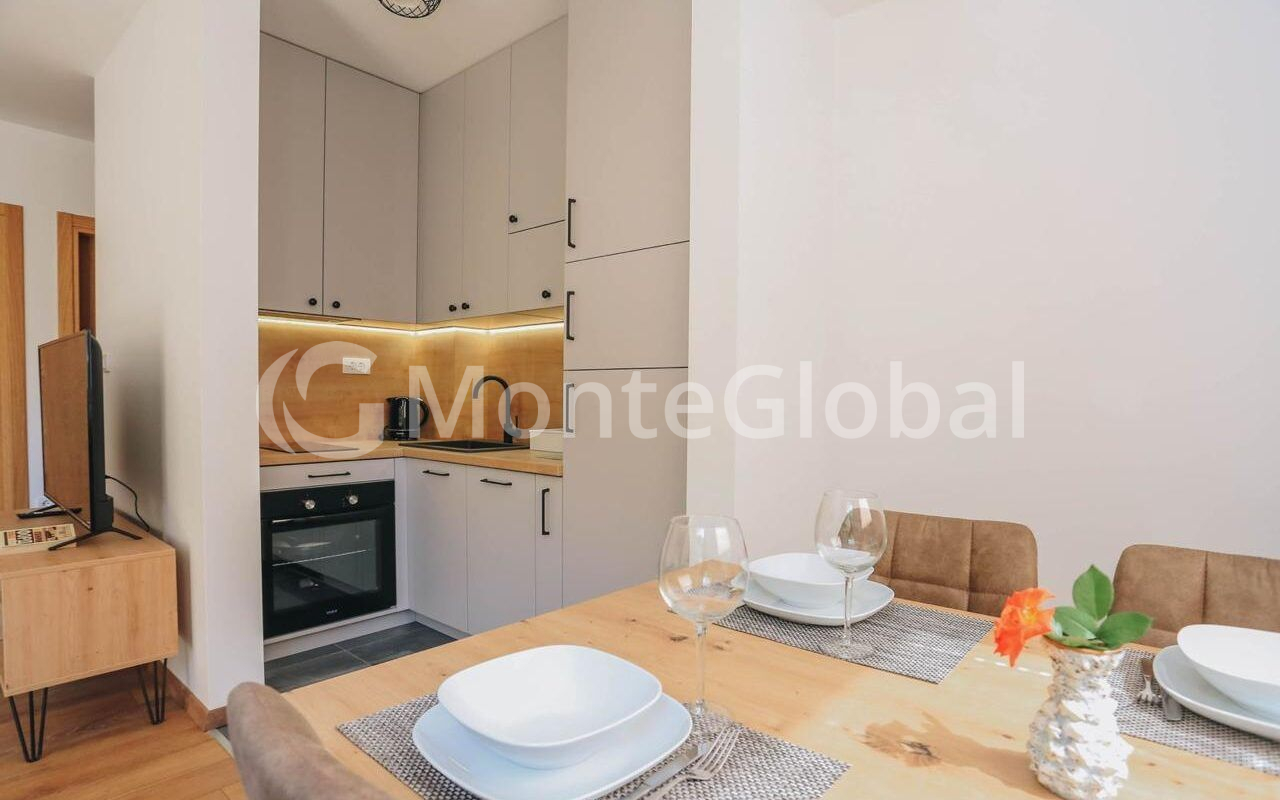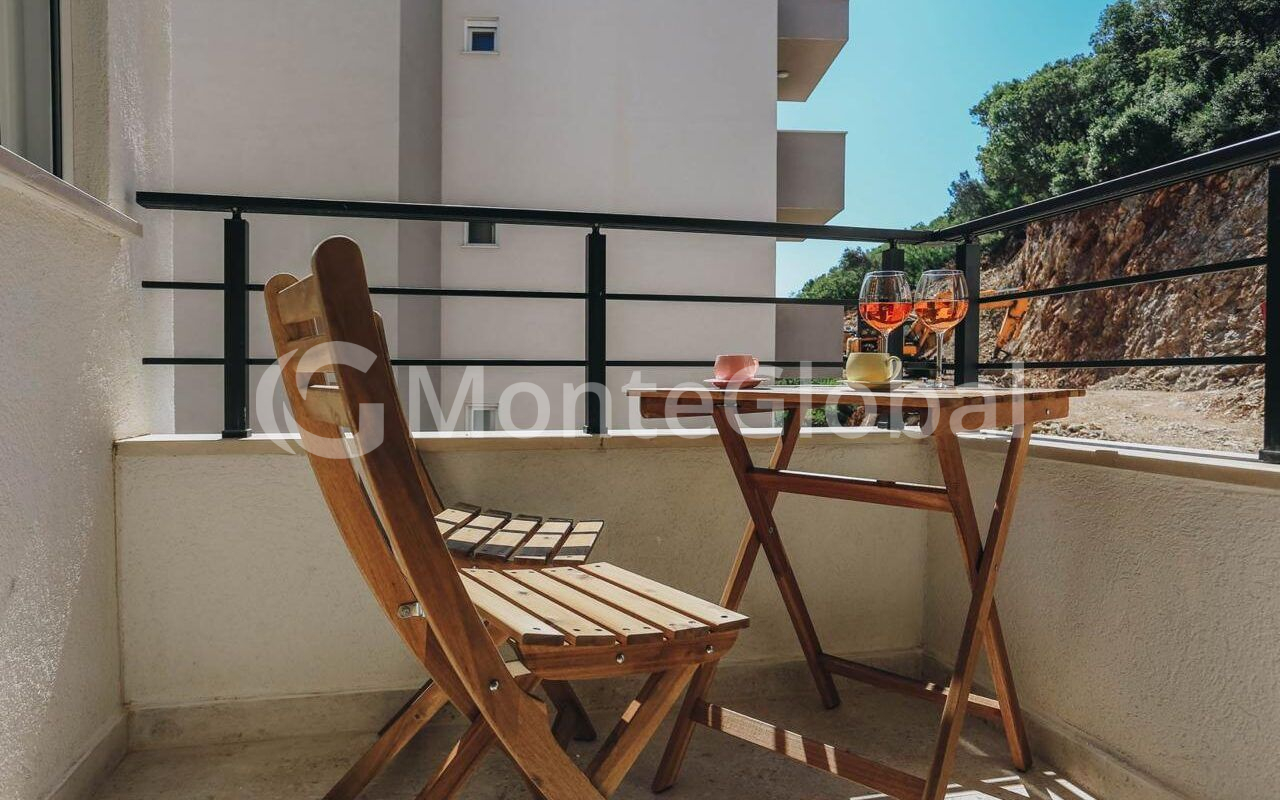 An apartment in Budva with a beautiful view of the mountain peaks and green forest is offered for sale.