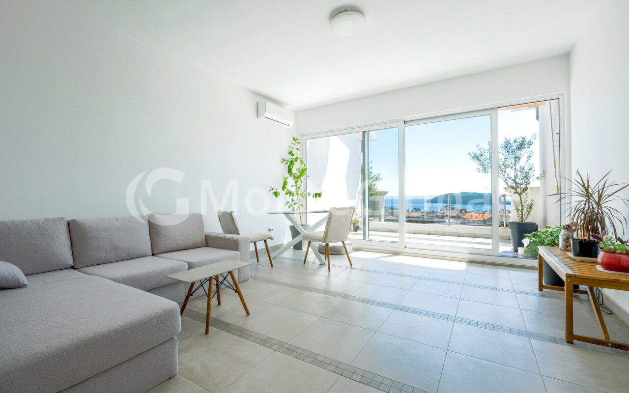 We offer you a spacious 1-bedroom apartment of 65 m² with stunning panoramic views of Budva and the Adriatic coast.