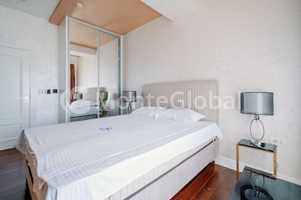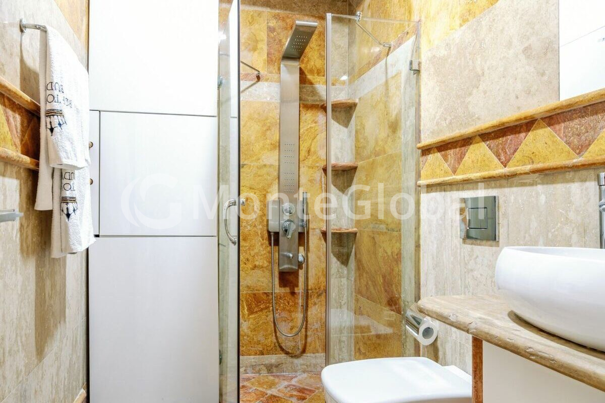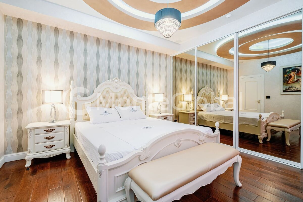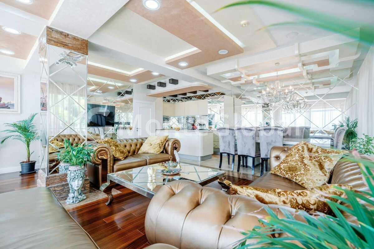 The floors are covered with premium oak parquet, and the decorations are made of hand-cut Iranian granite. The facade is clad in natural Travertine granite. The penthouse is equipped with a modern air conditioning system. The bathrooms feature walls and floors made of high-quality Iranian natural granite with hand-engraving and original finishing. The master bathroom has a shower and a Jacuzzi for two. The second bathroom includes a shower, sink, and washing machine. Premium Bally fixtures are installed. Two modern Ariston water heaters with a capacity of 80 liters each are also included. Fendi leather furniture, Fendi beds and mirrors, built-in American wardrobes, double-glazed aluminum windows.
