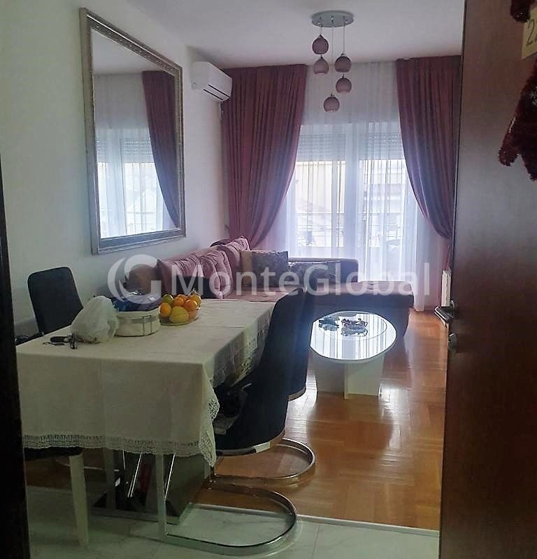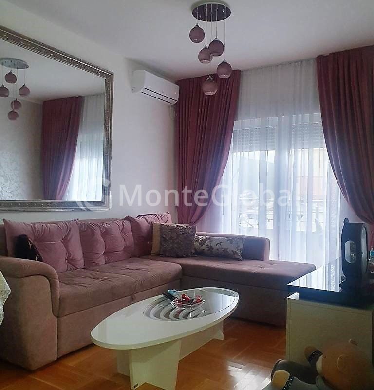 The structure of the apartment is a living room, a kitchen, one bedroom, a balcony and a bathroom
