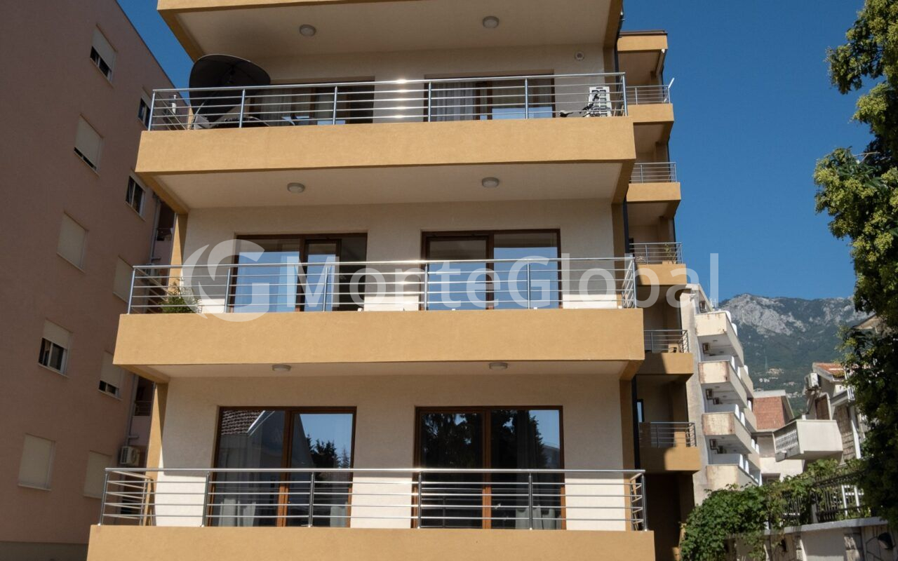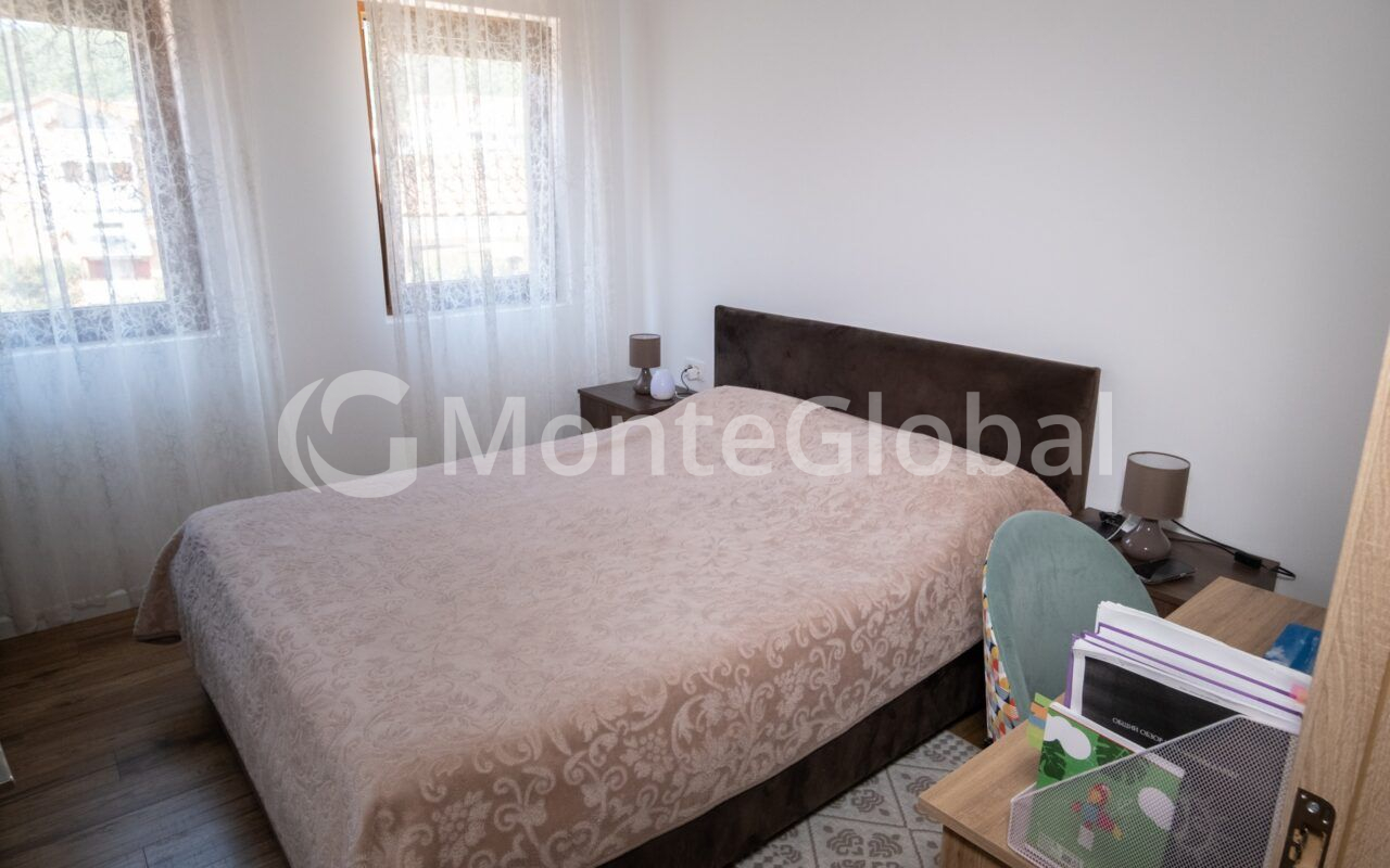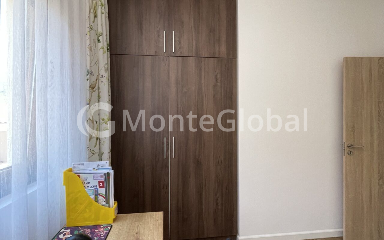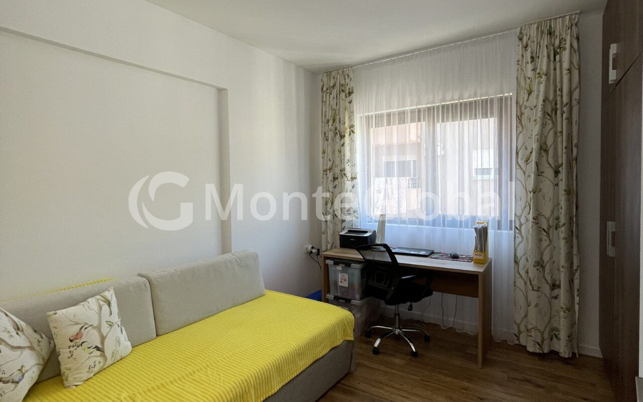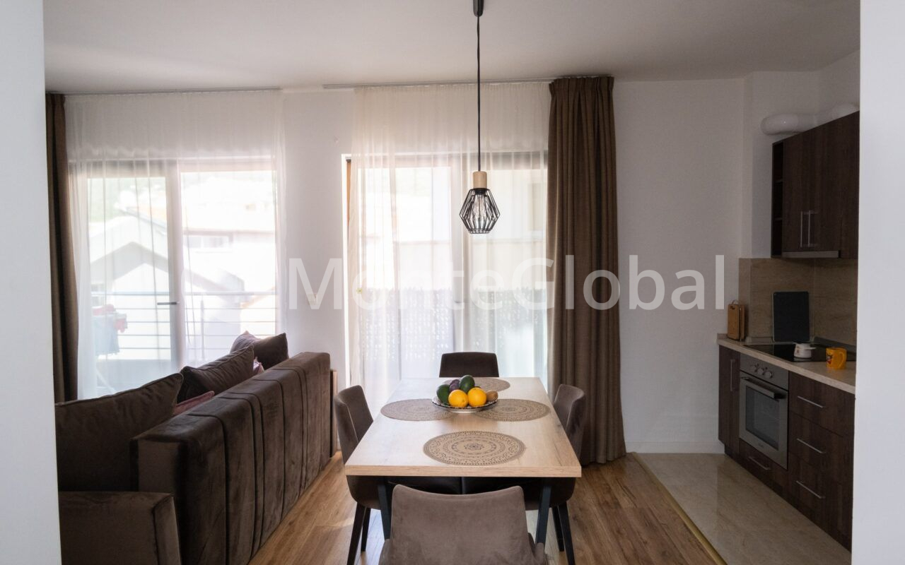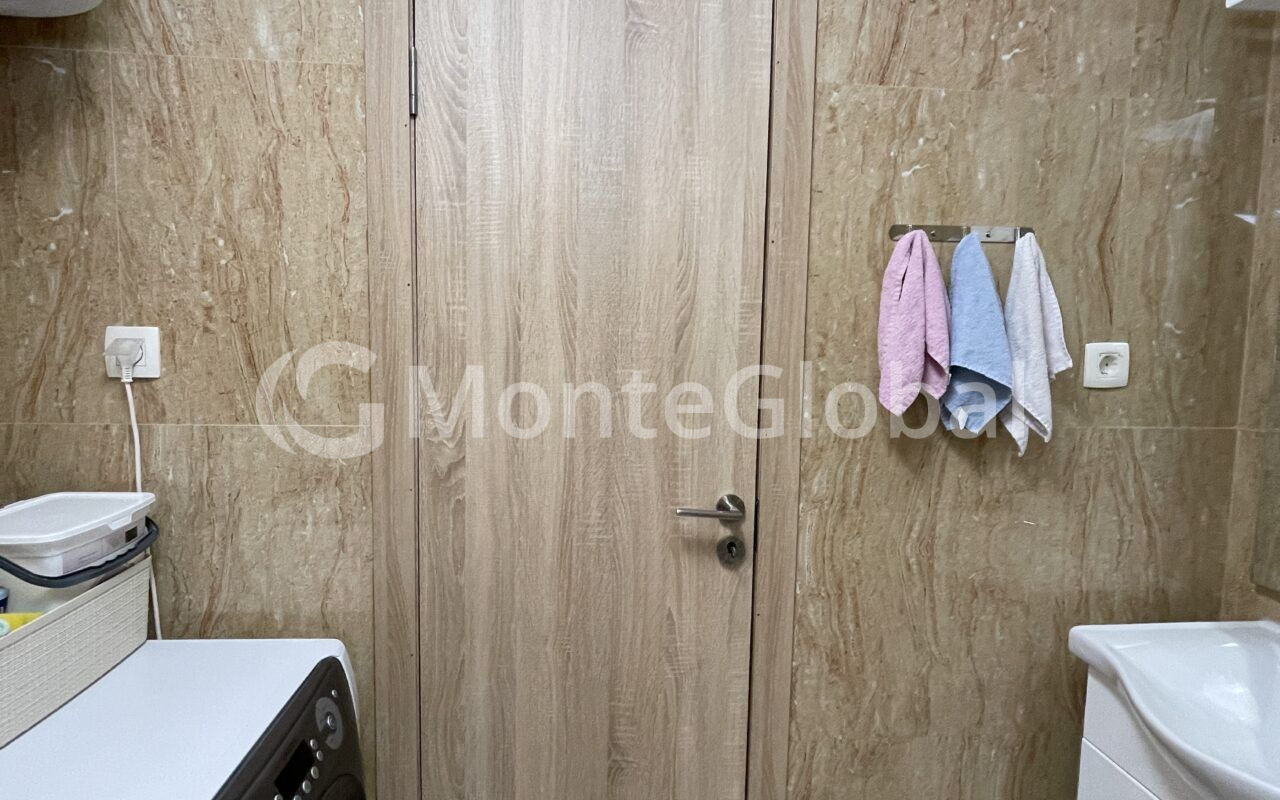 The structure of the apartment is a living room combined with a kitchen, two bedrooms, a bathroom and a terrace