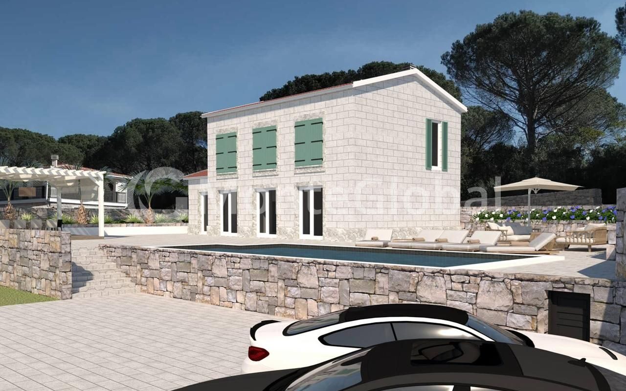 The house is built of white Croatian stone, without finishing, which makes it possible to do everything to your liking.