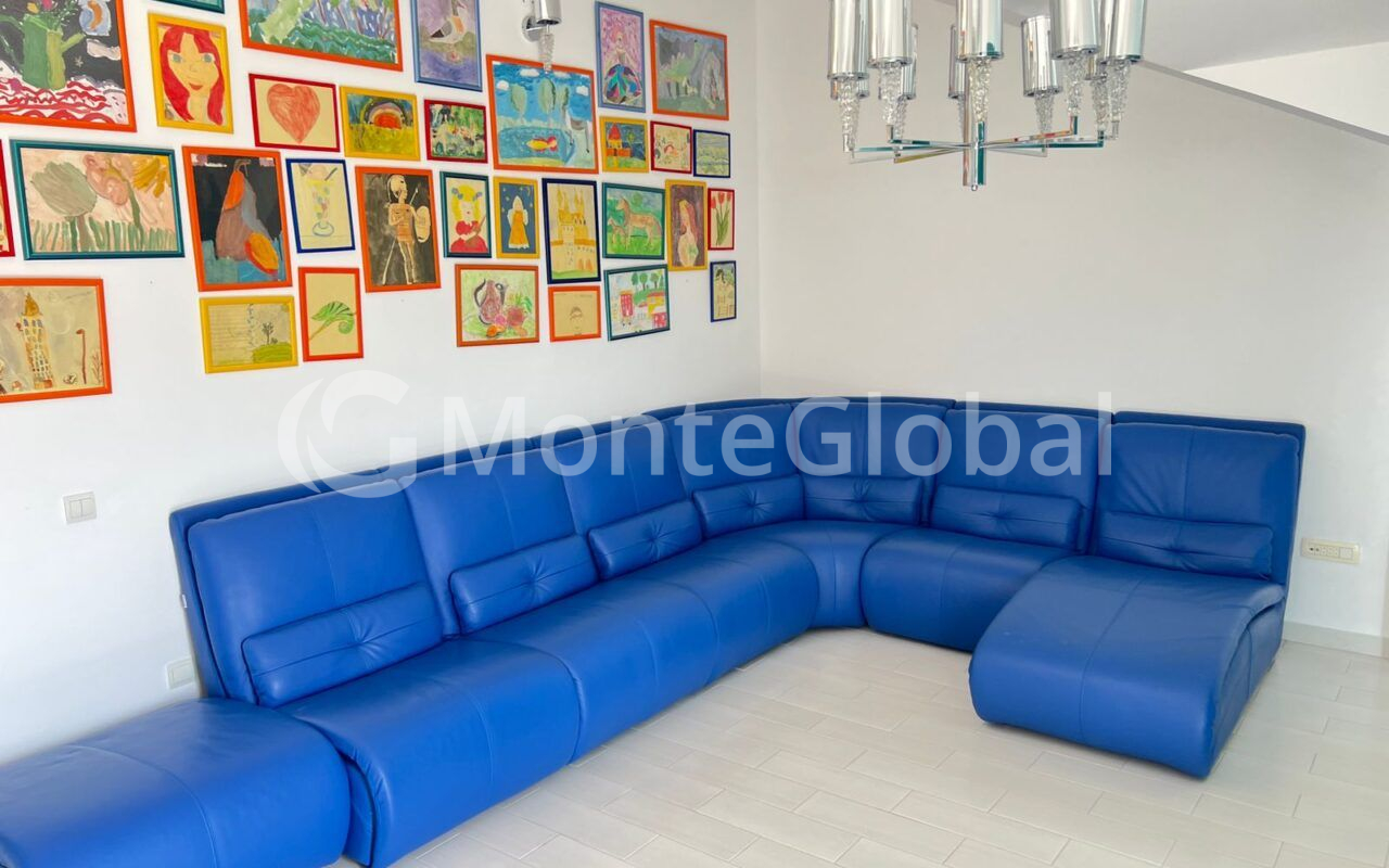 Arrangement of rooms and recreation areas by floors: 1st floor - Garage - Utility room (laundry with washing machine, boiler room). 2nd floor - Living room with fireplace and access to the terrace and garden - Kitchen - Dining area with access to the terrace and garden - Games room with access to the terrace and garden - Nanny or maid's room - Bathroom - Terrace - Garden - Barbecue - Technical house for gardening equipment (in the garden). 3rd floor - 1 isolated double room with a bathroom. - 1 isolated block of rooms, consisting of 1 double and 1 single room and 1 bathroom. - 2 double rooms have one bathroom (with an entrance through the corridor). 4th floor - 1 isolated double room with a bathroom. - 1 isolated block of rooms, consisting of 1 double and 1 single room and 1 bathroom. - living room with sofas and access to a large balcony overlooking the sea and the old town.