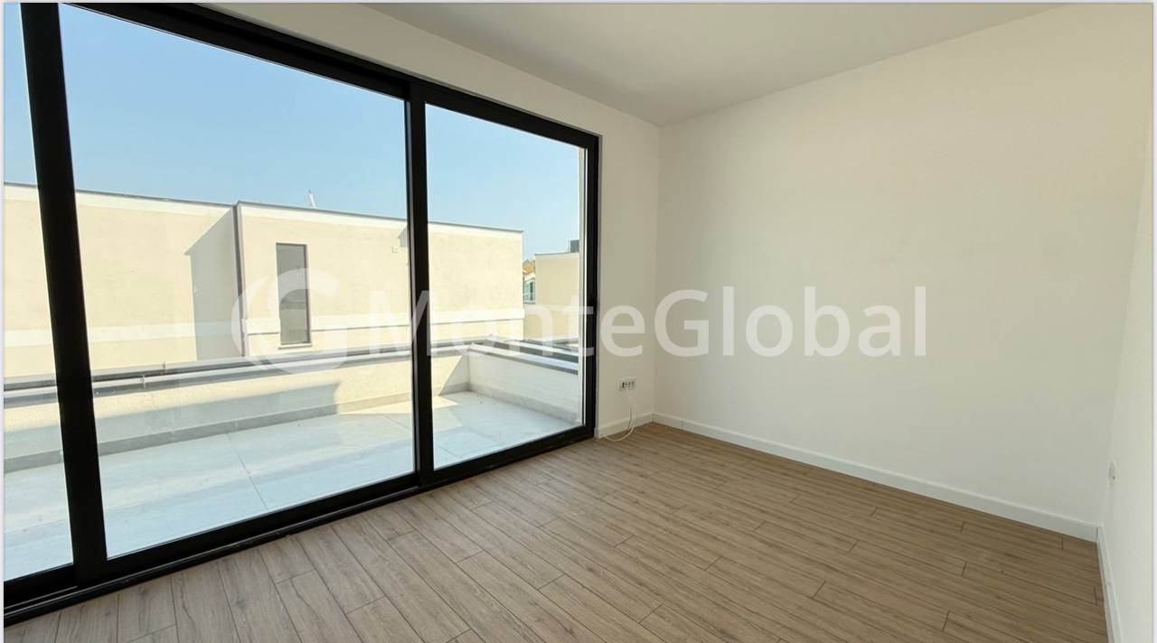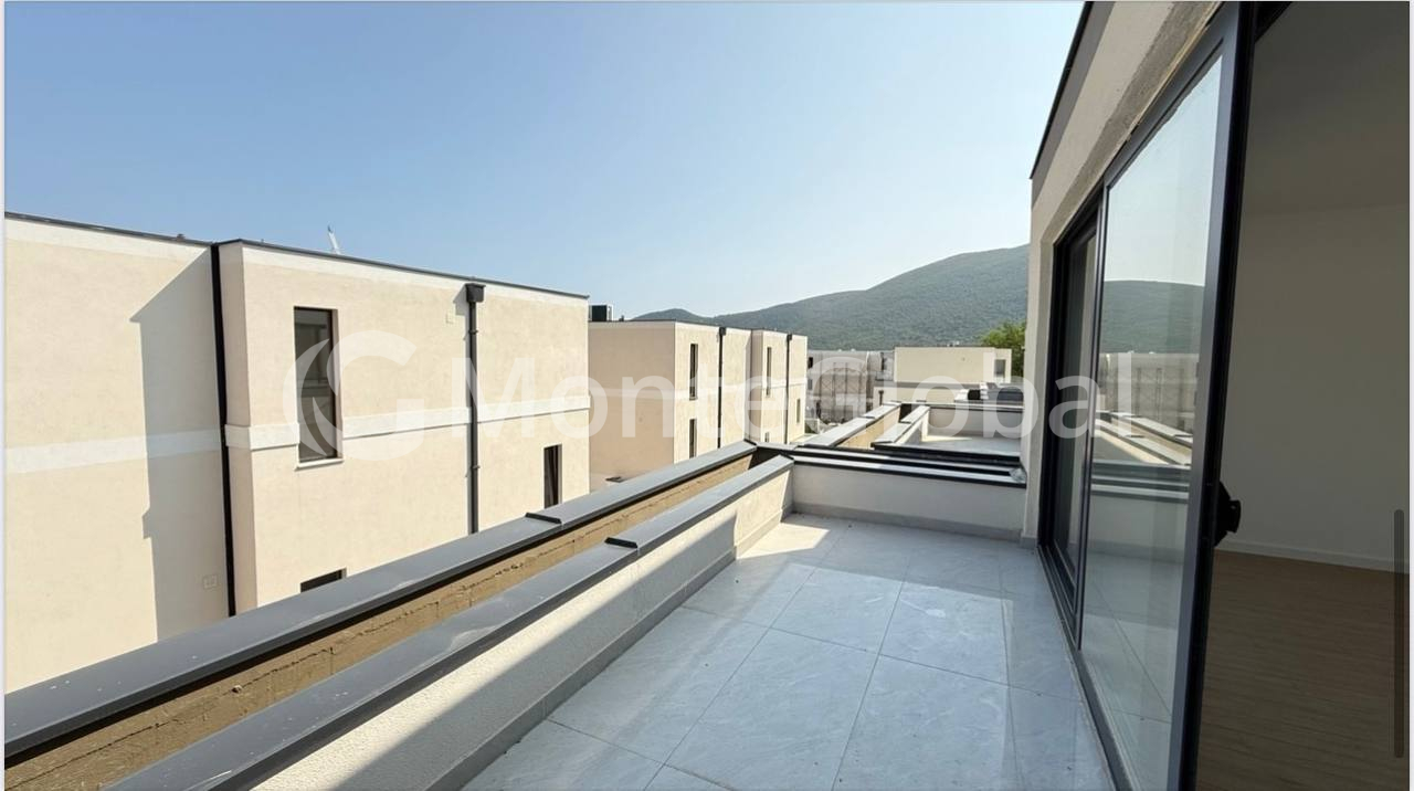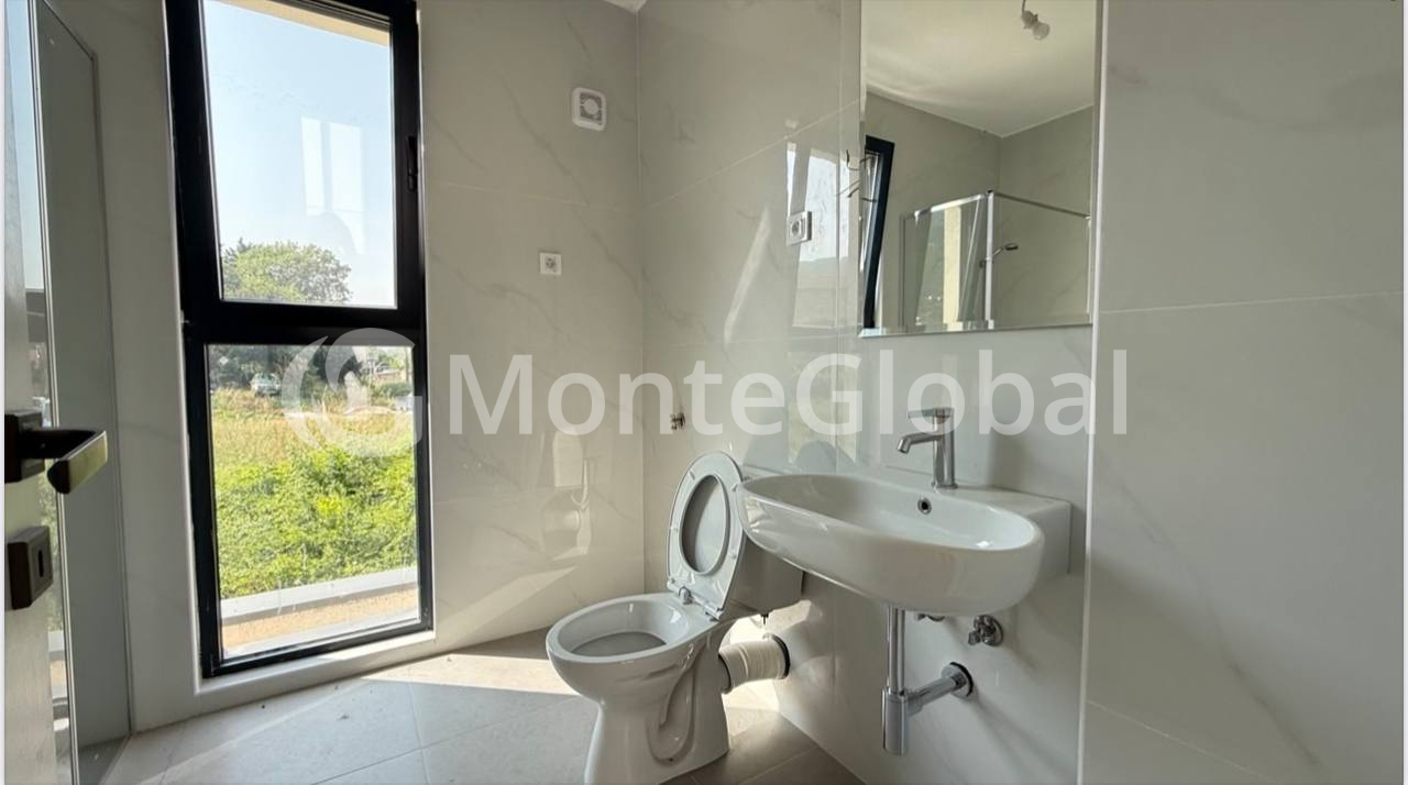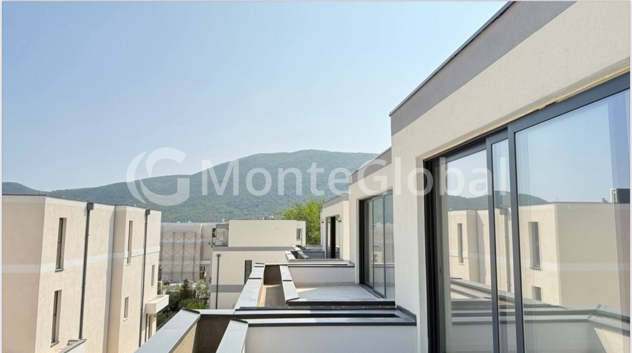 This three-story townhouse in the Lastva neighborhood of Budva is available for purchase. The total area is 116.5 square meters. The first floor includes an entrance area, a kitchen area combined with a living room, a guest bathroom, and a terrace with access to a small courtyard. The second floor features two bedrooms, each with an en-suite bathroom and access to the terrace. The third floor features a master bedroom with a terrace, a walk-in closet, and an additional bathroom. The property is being sold unfurnished, giving new owners the opportunity to customize the space according to their personal preferences. Residents of the complex have access to a communal swimming pool. One parking space is included in the price of each townhouse.