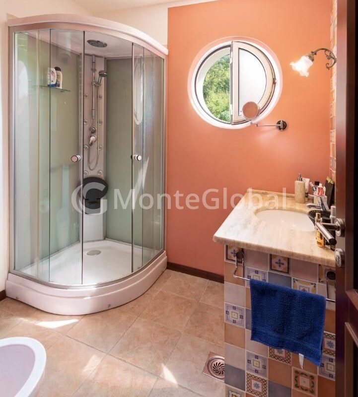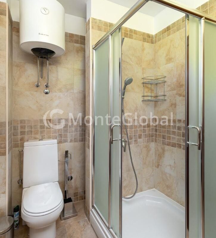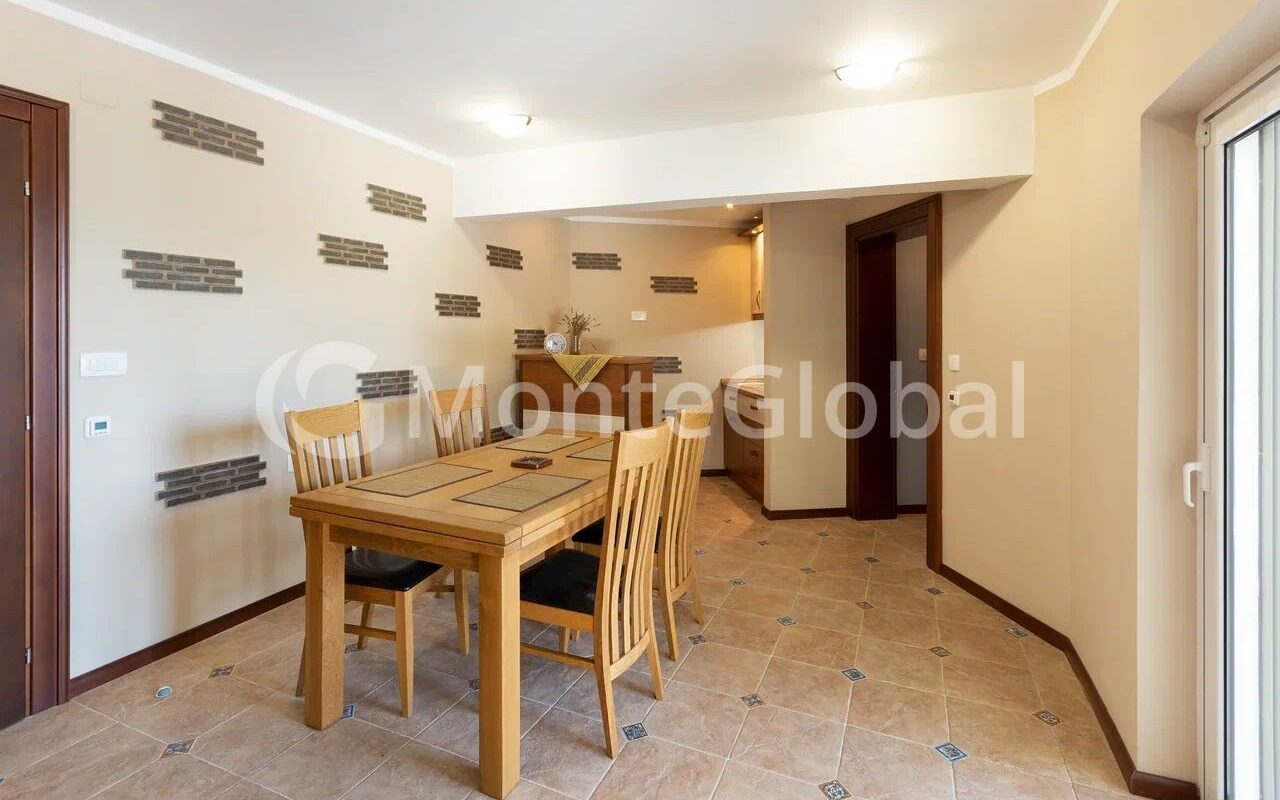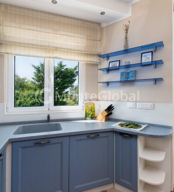 The decoration uses only natural materials such as stone, travertine, marble and oak. All furniture and doorways are also made of solid oak and made in Italy to order. The kitchen is equipped with high quality appliances from Gorenje.