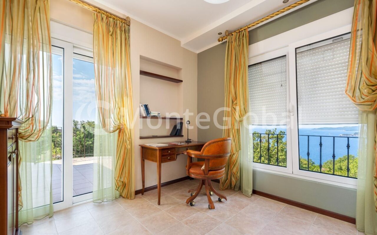 "Casa Dea" consists of 3 floors and includes a total of 5 bedrooms, 5 bathrooms, an office, a living room with a fireplace, a kitchen with a utility room and a dining room, a guest apartment with a kitchen, a sauna with a lounge area and a wine cellar, a gym.