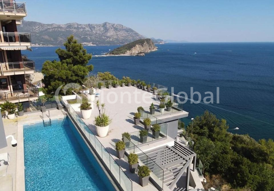 The villa is fully equipped and furnished, overlooking the sea and Budva.