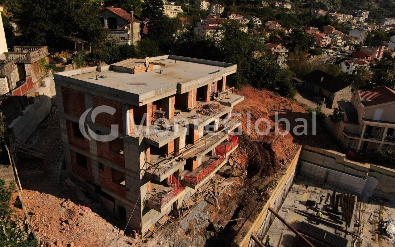 A residential complex that is under construction in the attractive area of Dobrota in Kotor, in close proximity to the sea. It consists of two buildings, each of which has three floors and is at the rough construction stage.