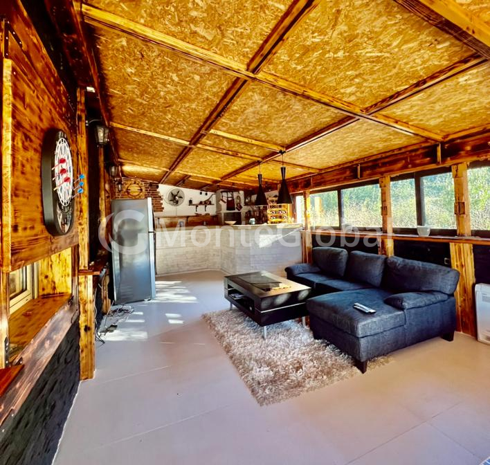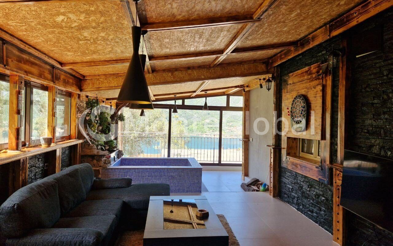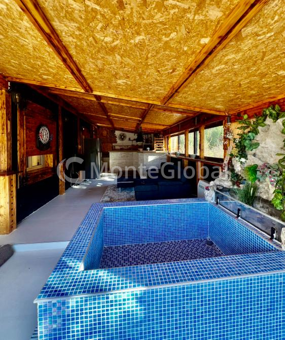 The glassed-in terrace has a relaxation area with a jacuzzi.