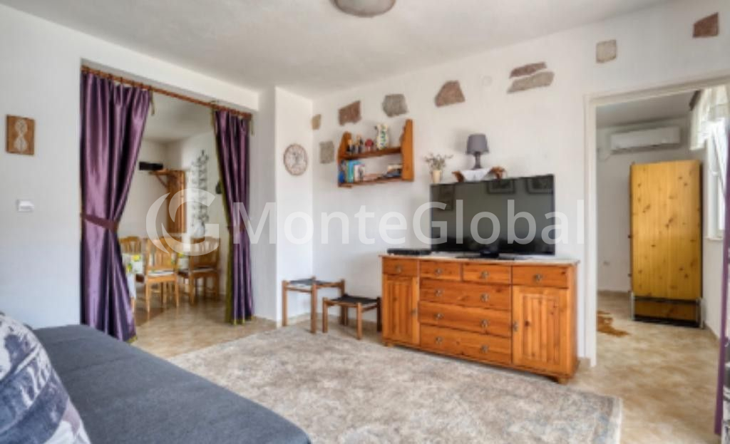 The structure of the house is a living room, a kitchen, three bedrooms, a bathroom and a terrace overlooking the sea