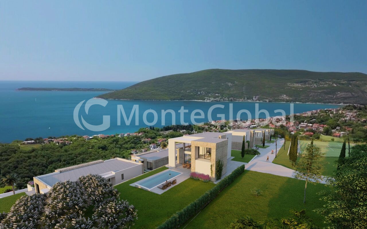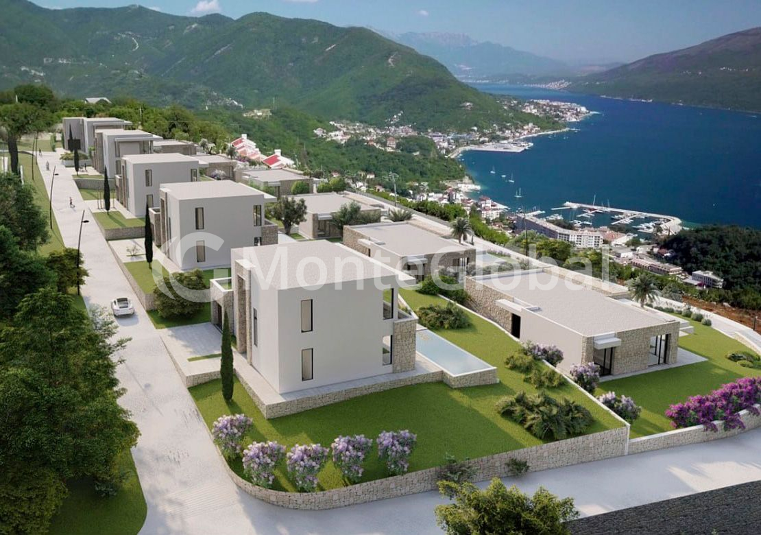 Each villa offers panoramic views of the Bay of Kotor and the open Adriatic Sea.
