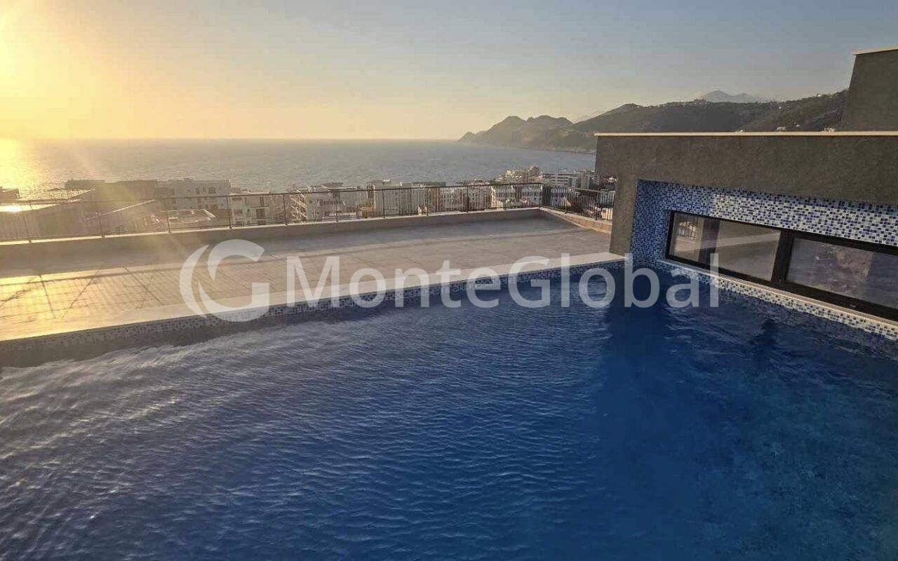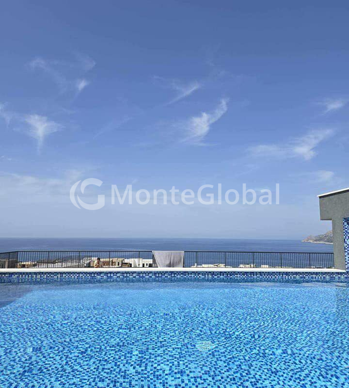 At the top of the building there is a swimming pool with a panoramic view of the sea and the surrounding area.