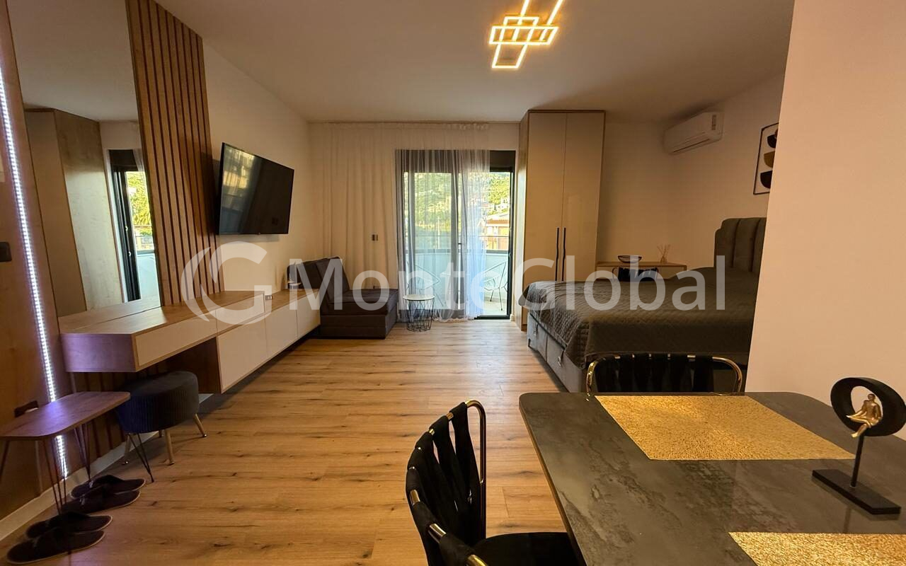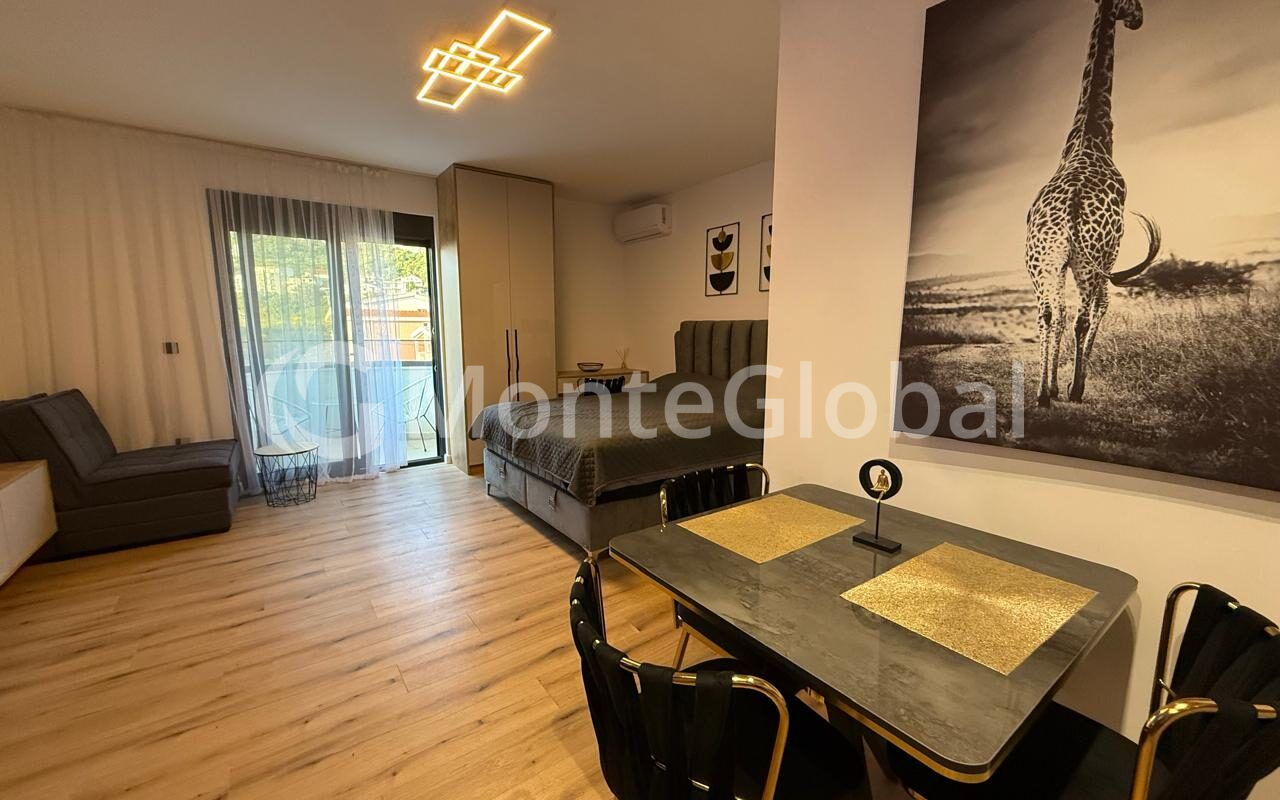 A bright and cozy studio apartment in the picturesque village of Dobra Voda is offered for purchase.