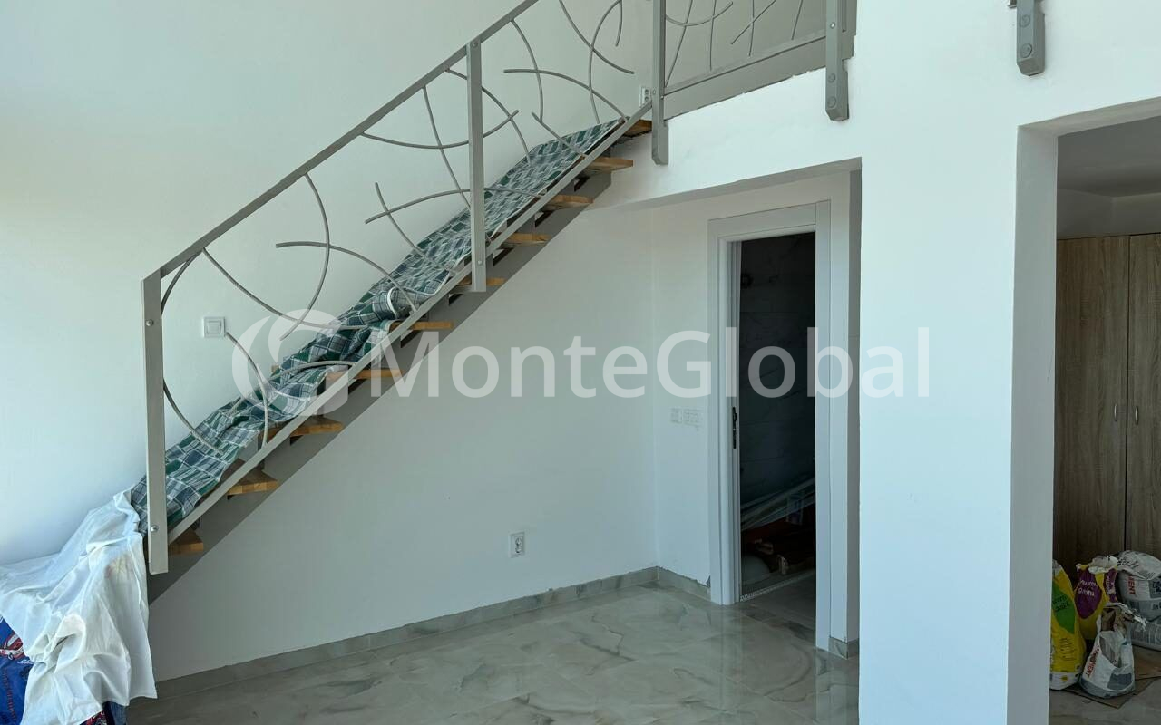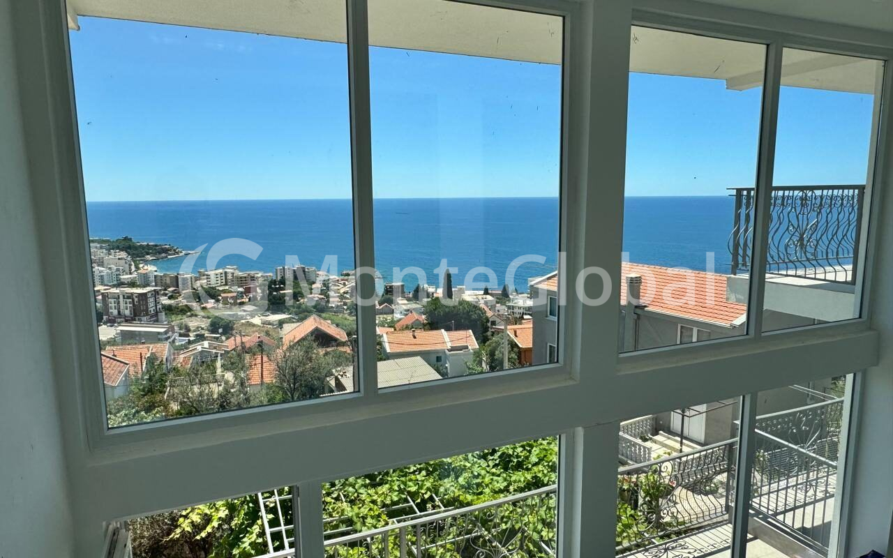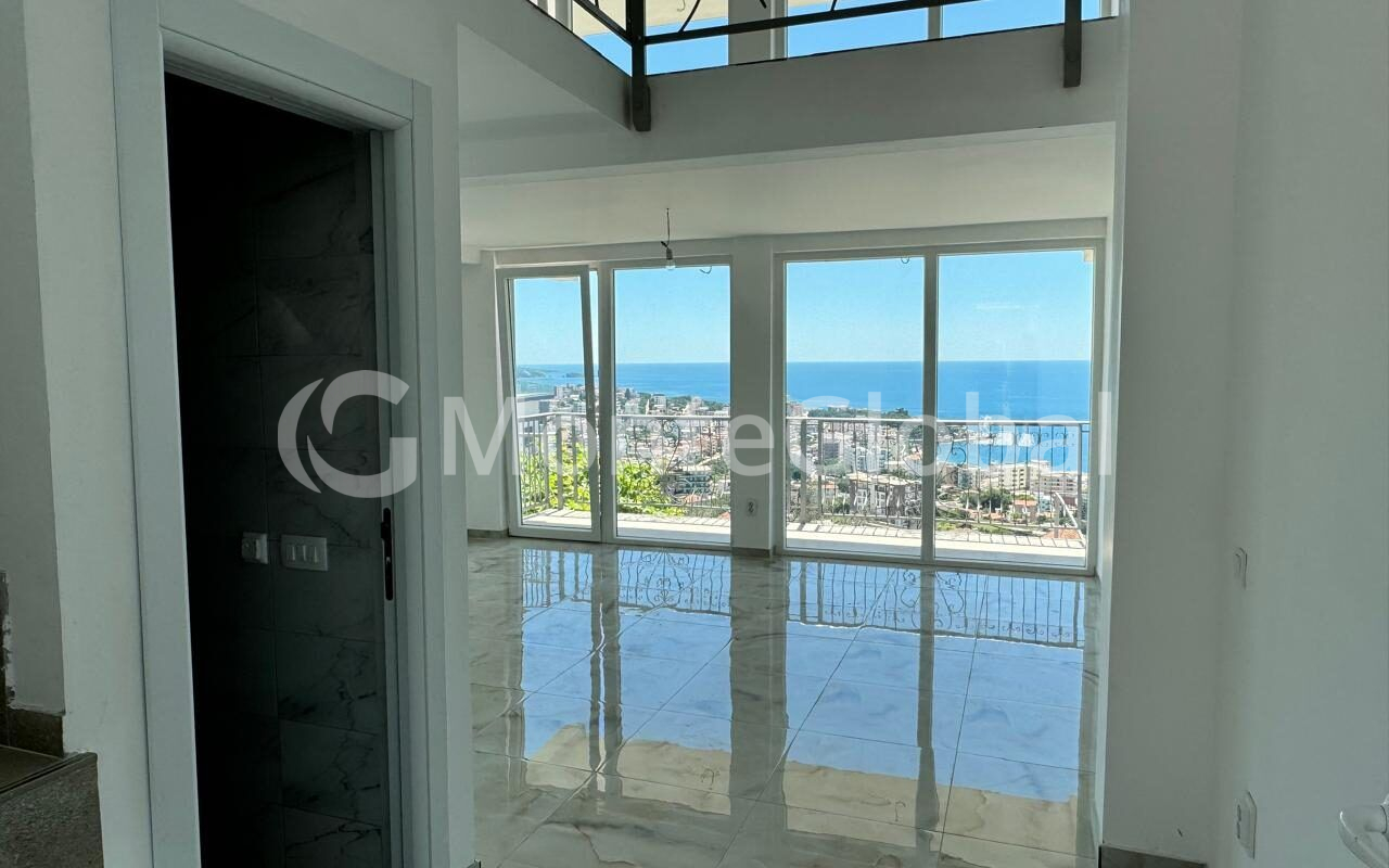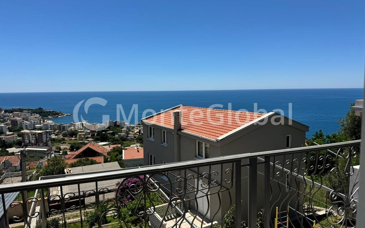 In the village of Dobra Voda, a modern spacious apartment is for sale, located on two levels and offering stunning views of the sea horizon. The apartment is conveniently located in one of the two buildings of a quiet residential complex.
