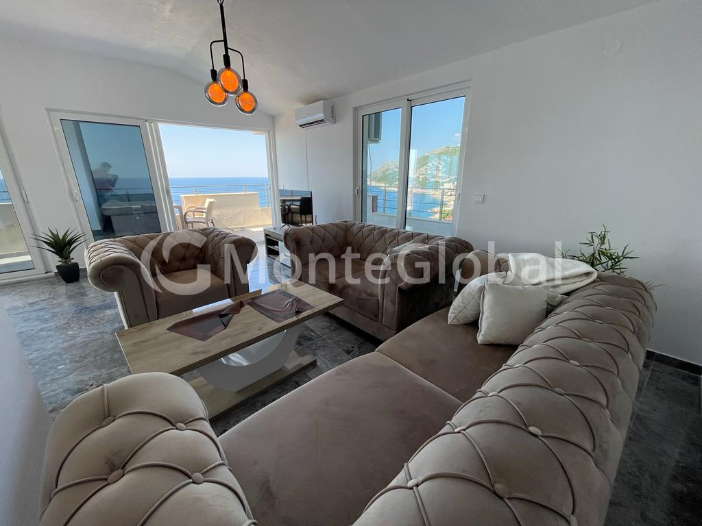 Apartment for sale (134m2) on the shore of the Adriatic Sea in the town of Dobra Voda. The apartment is located on the 3rd floor in a building without an elevator. Furnished, sold with furniture. The documents have been submitted for legalization. Parking. 400 meters from the sea. The apartment is located on the south side.
