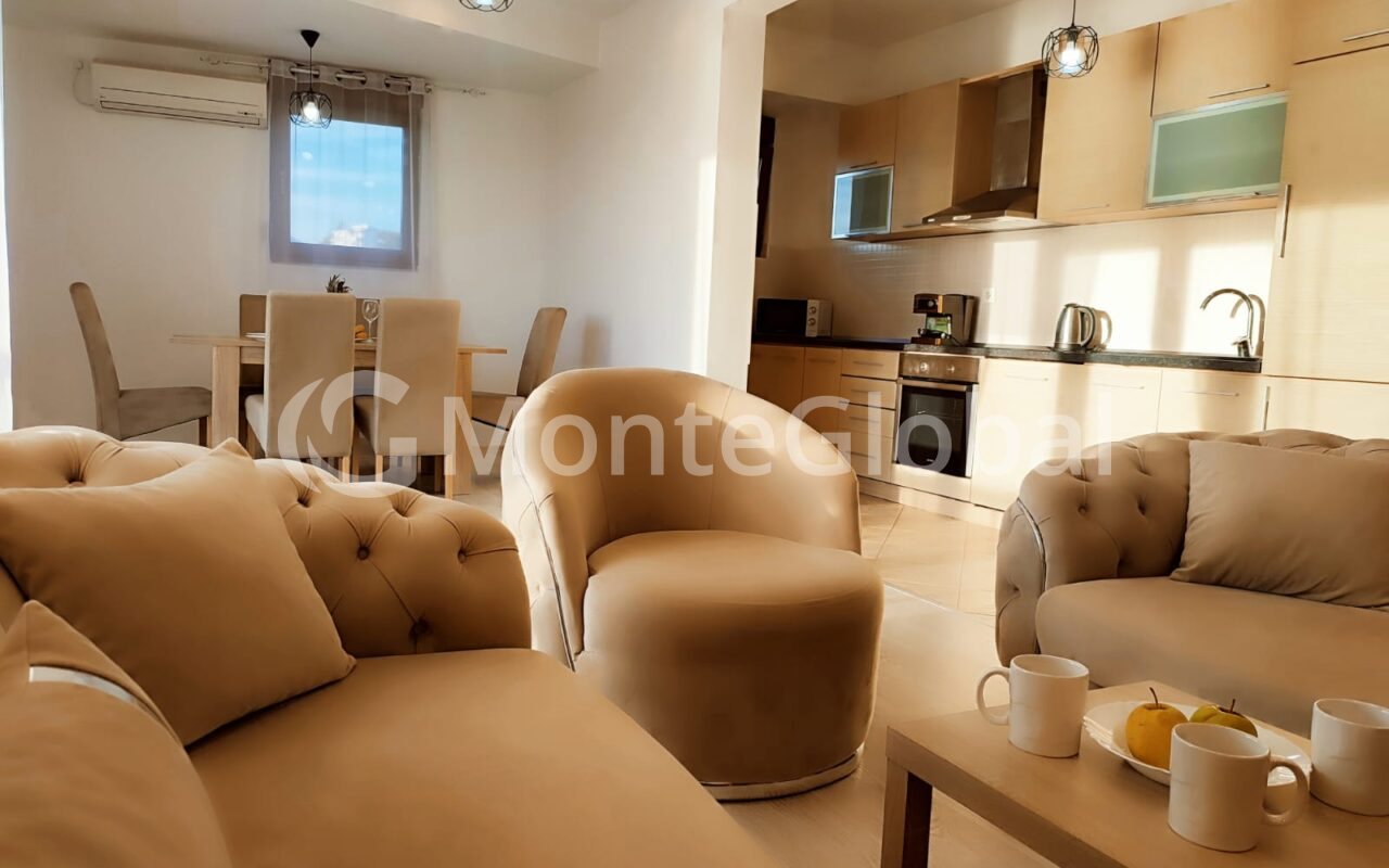 Structure: large hall, bathroom, two huge bedrooms, living room combined with kitchen, terrace