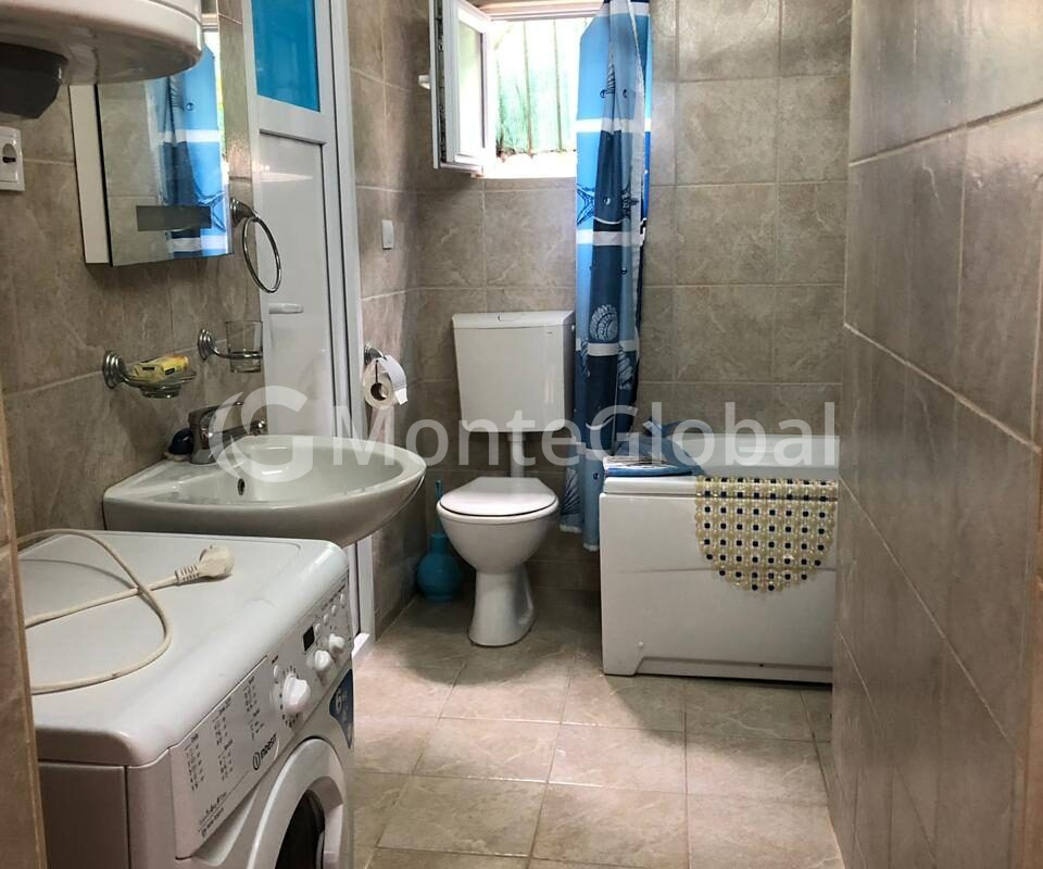 1st basement floor: studio apartment (35 sq.m.): bedroom, living room-kitchen, bathroom with bathtub, washing machine. The apartment is designed for a family of 2 - 3 people. This apartment includes a stone gazebo with columns, a shady courtyard under a grapevine, a stone barbecue, a patio, a garden with citrus trees, fruitful grapes, flowers, parking