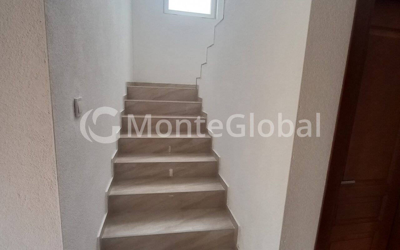 The house has a living room, kitchen, four bedrooms, two terraces, two bathrooms and a storage room