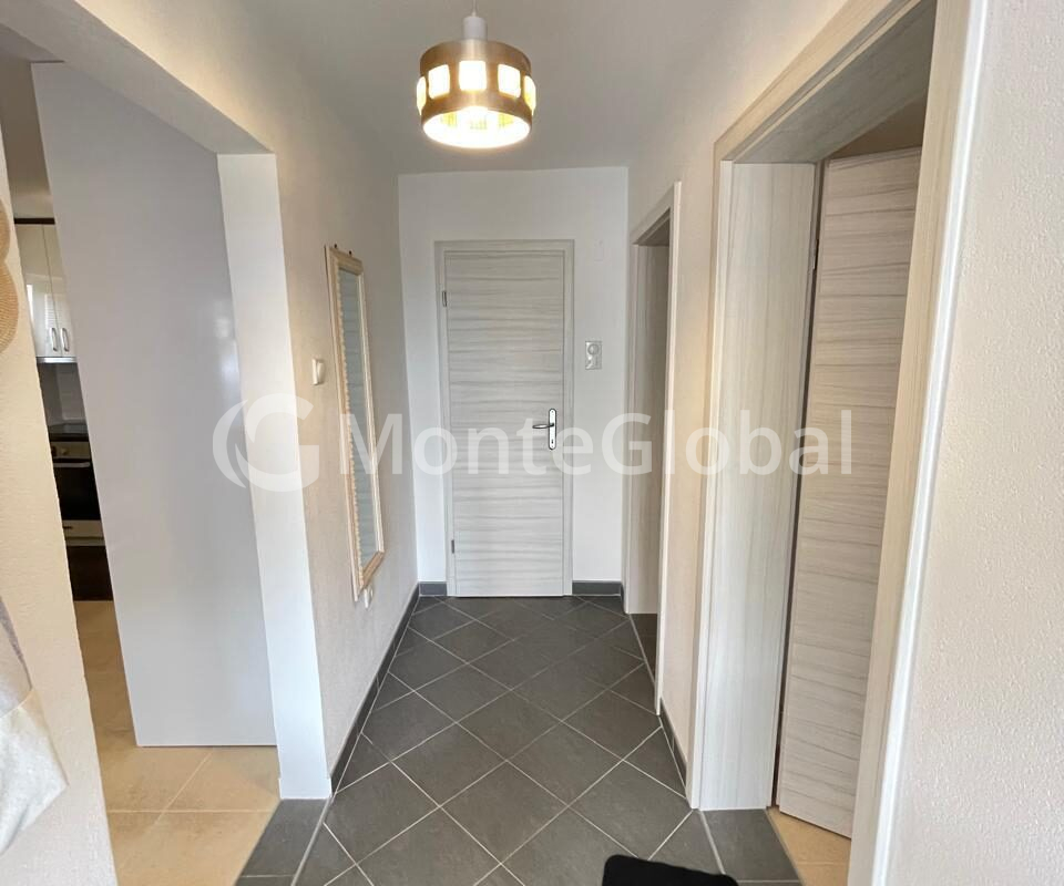 1 part of the house: living room with kitchen, corridor, bathroom, 2 bedrooms, large terrace in front of the house 15m