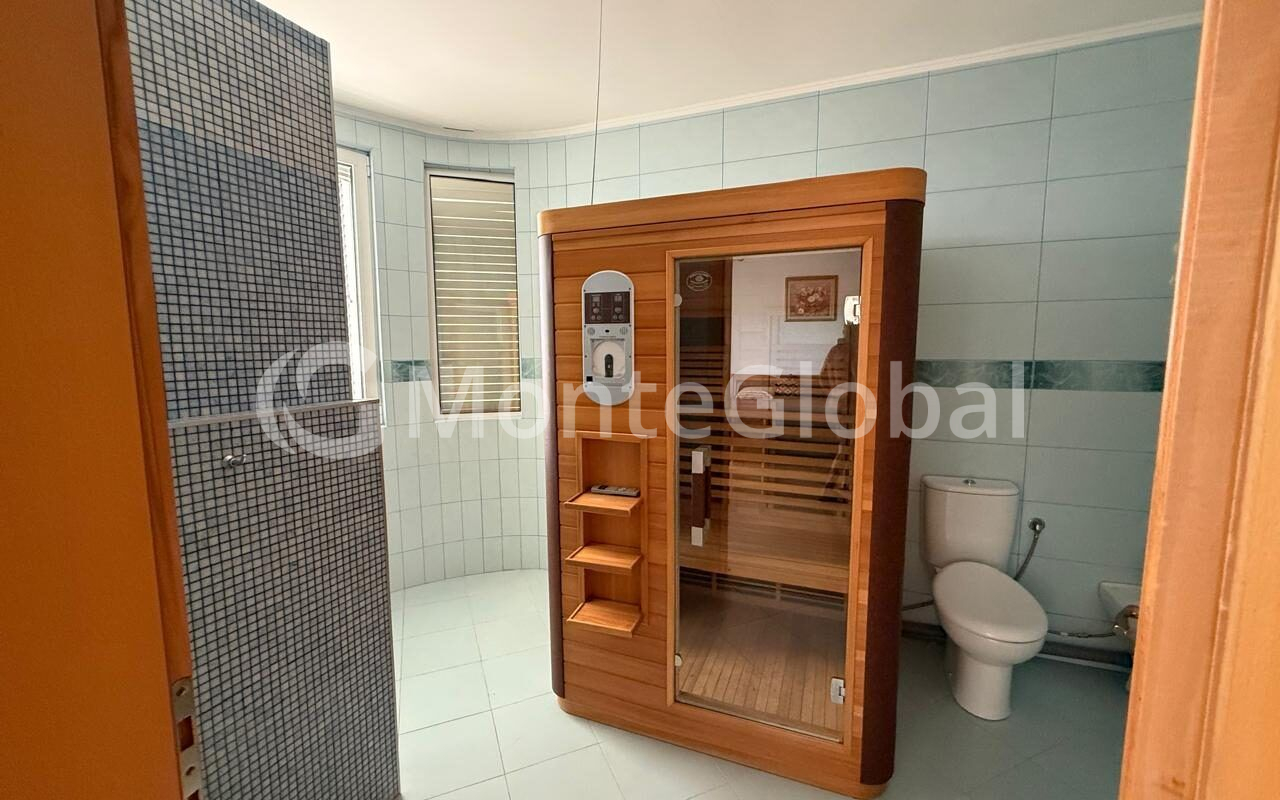 The layout of the house is thought out to the smallest detail. On the ground floor there is a living room, dining room, guest toilet and laundry room. The second and third floors offer six bedrooms and four bathrooms, which is ideal for large families or entertaining guests. High-quality materials were used in the decoration, including parquet floors, a jacuzzi with sea views, modern central and underfloor heating systems, as well as an efficient air conditioning system.