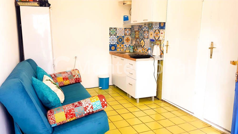 The layout includes: a terrace, a combined living room with a kitchen, a bedroom, a bathroom and a storage room.